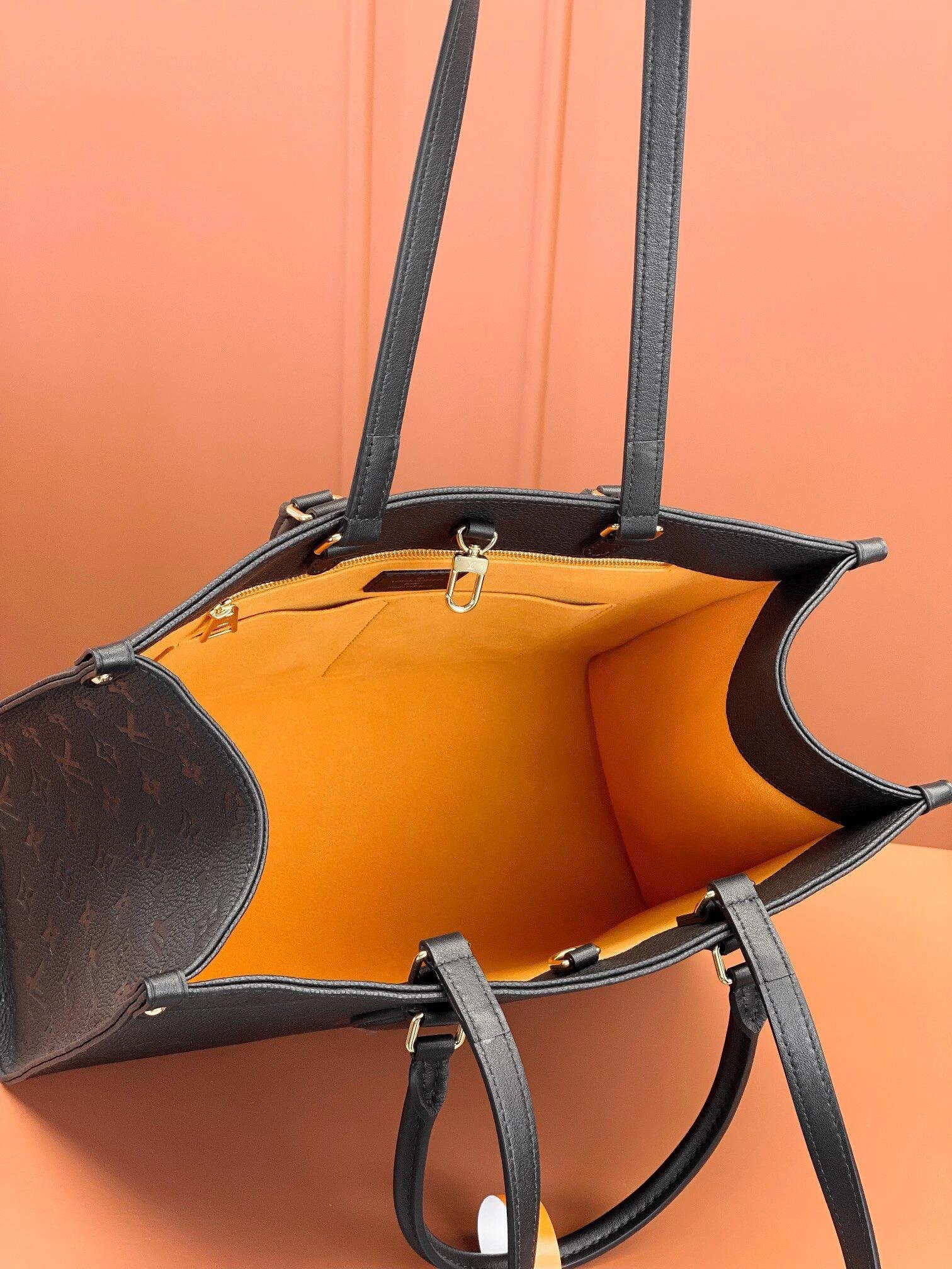 For Spring 2021, Louis Vuitton launches the Onthego MM tote bag in grained Monogram Empreinte, a soft leather that is embossed with a large and modern Monogram pattern. Thanks to the square shape, it boasts a generous capacity and can easily fit a laptop. Its articulated top handles and shoulder straps give carrying options.