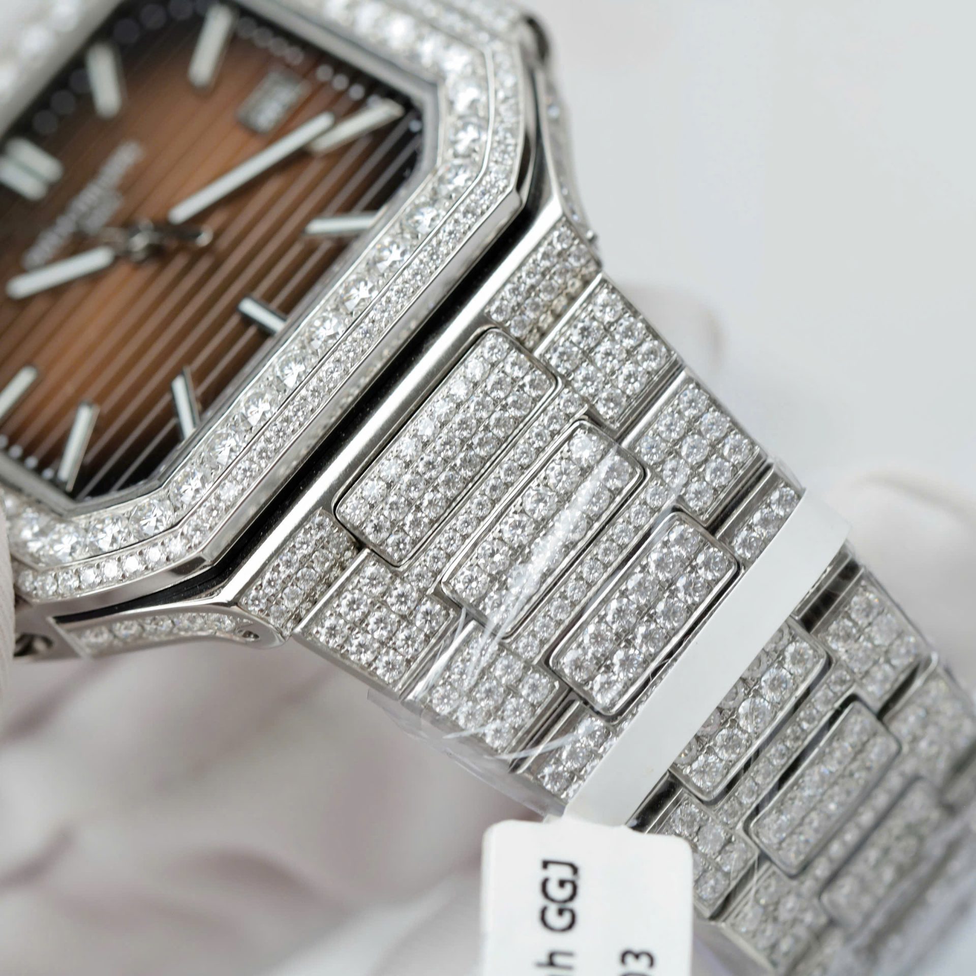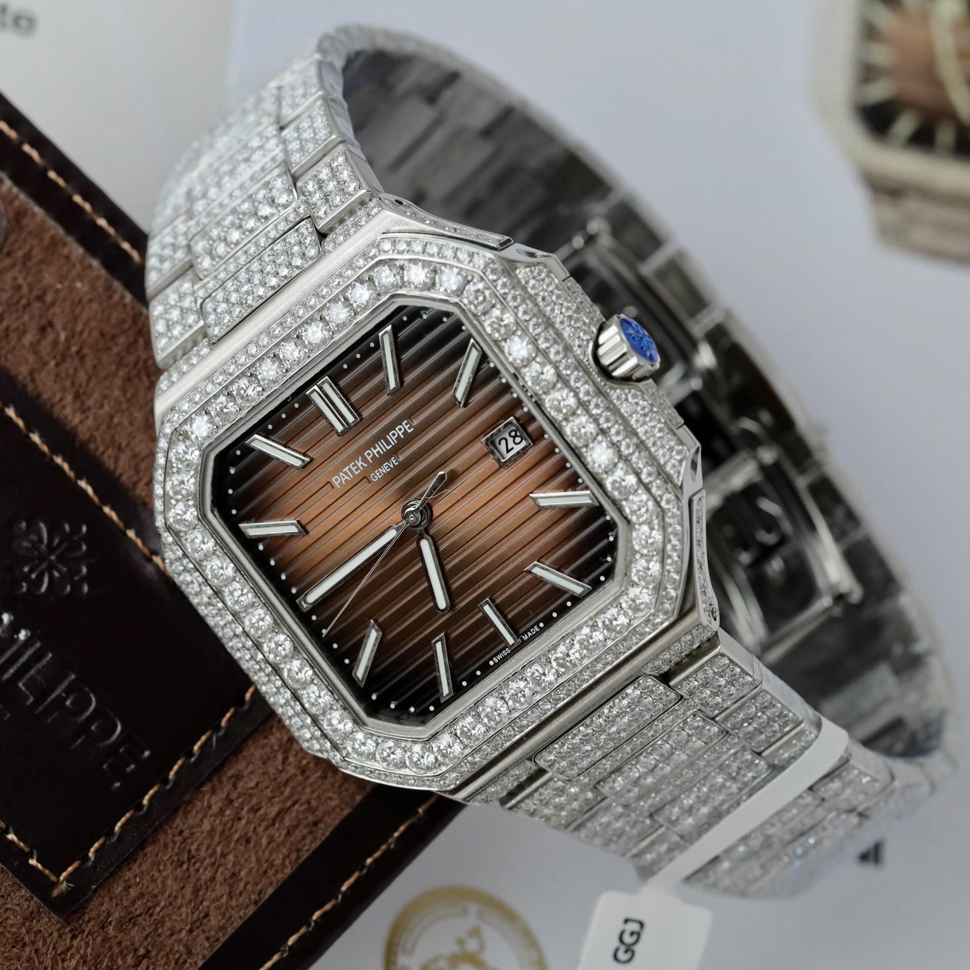 Patek Philippe Cubitus 5821 Dial Brown Replica Watch Full Diamonds Moissanite Hong Kong 45mm