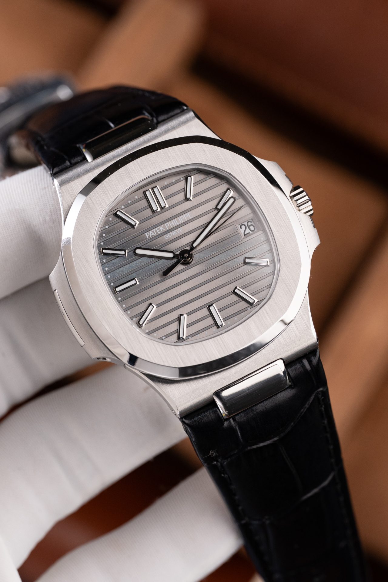 Patek Philippe Nautilus 5711 Luxury Fake Watches Gray Dial Leather Strap BBF Factory 40mm