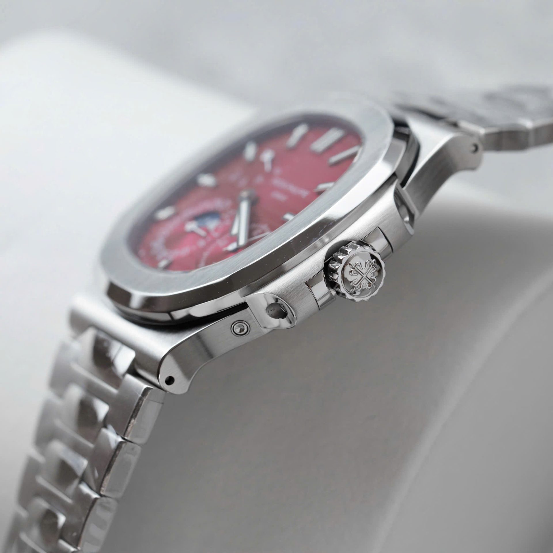 Patek Philippe Nautilus 5712 Fake Watches Cherry Dial Metal Strap GR Factory 40mm