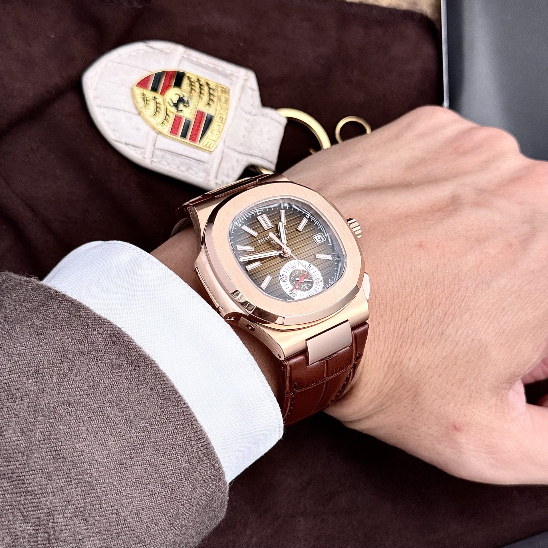 Patek Philippe Replica Watch Nautilus 5980 Brown Dial Leather Strap 40mm