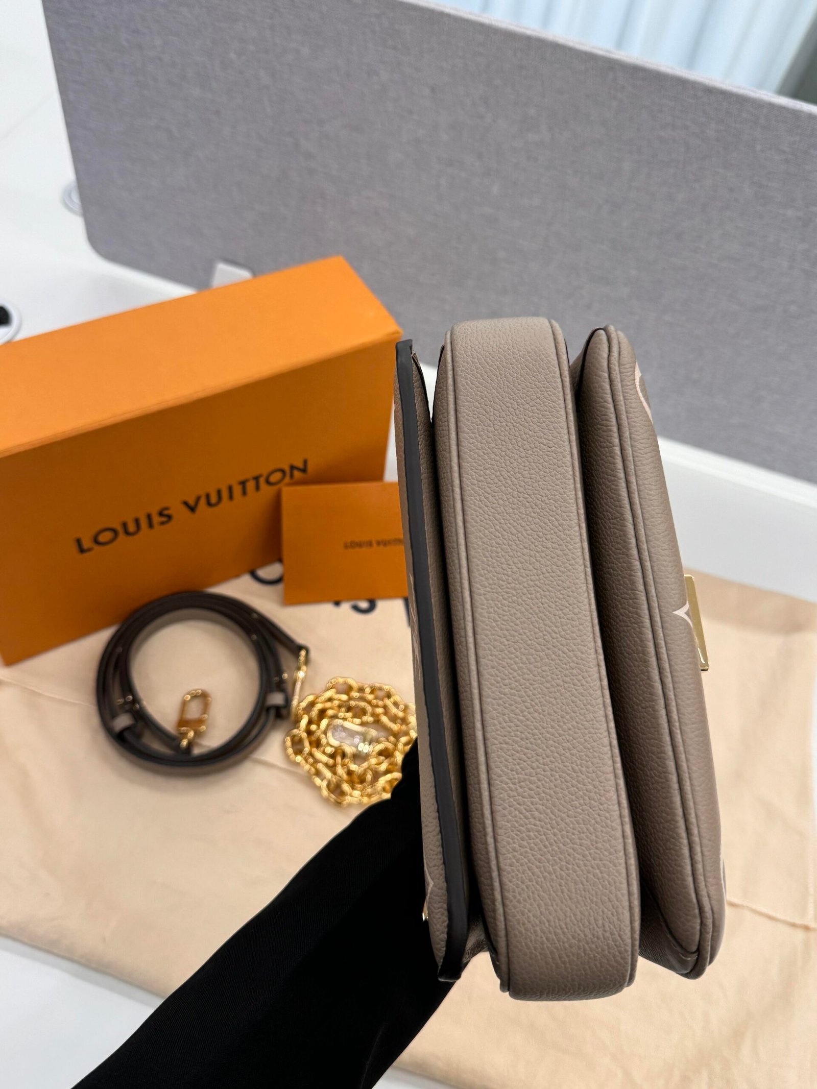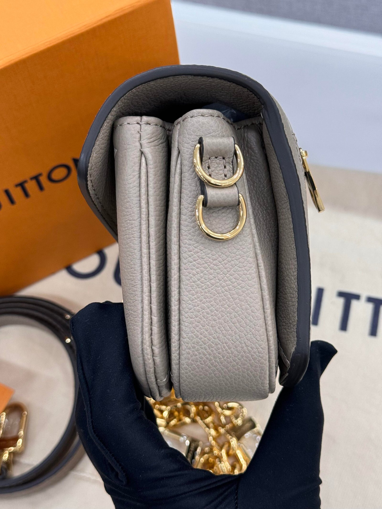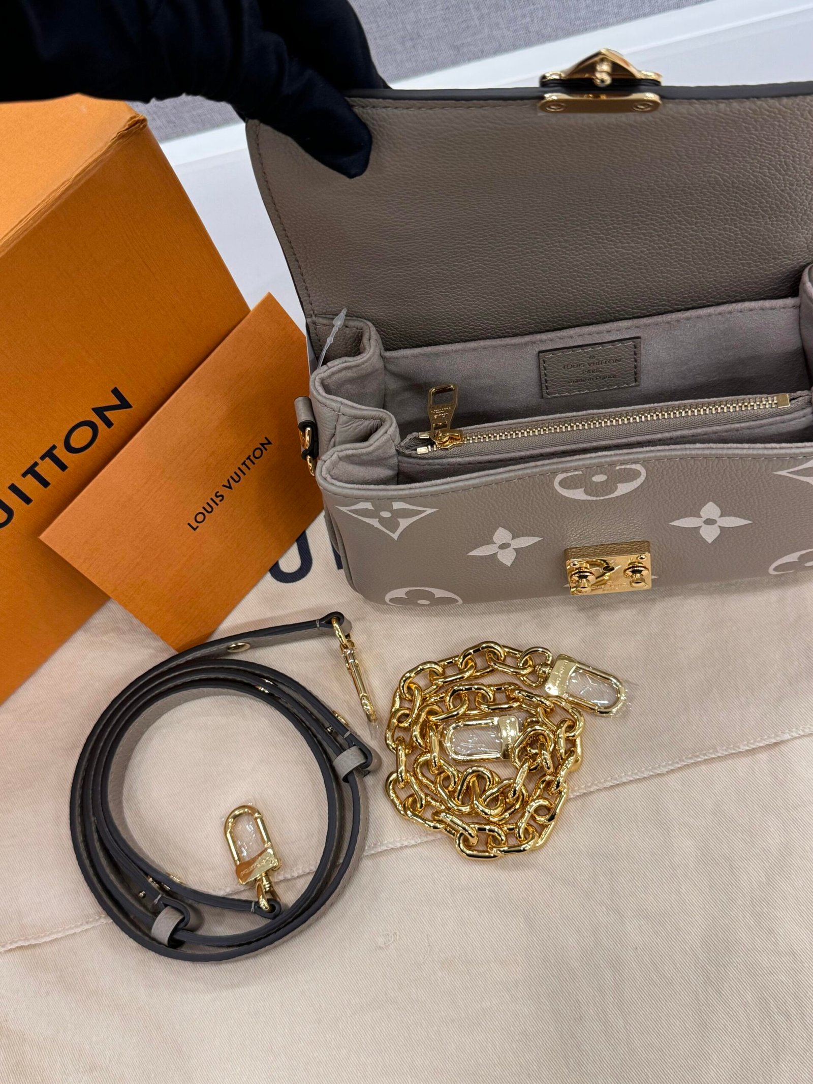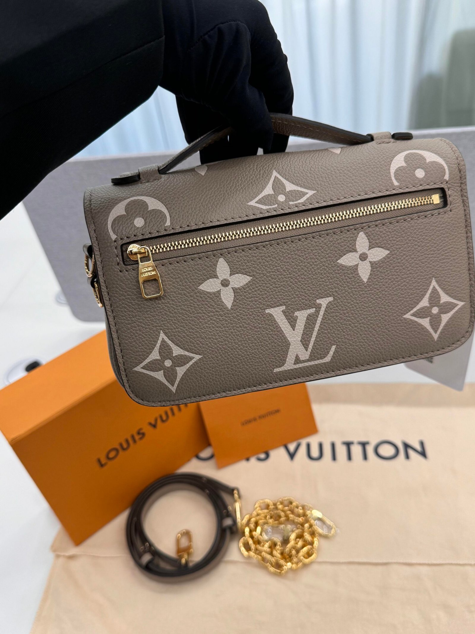Crafted from Monogram Empreinte leather, with its embossed Monogram pattern, the Pochette Metis East West handbag blends classic Louis Vuitton design codes with contemporary details. The S-lock and top handle evoke the House’s historic trunks while the compact proportions and removable chain, perfect for short shoulder carry, bring an up-to-the minute feel.