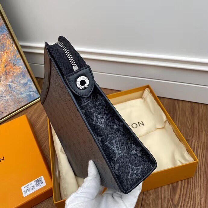 The Pochette Voyage MM brings together dark Monogram Eclipse canvas with lighter Monogram Eclipse Reverse for a bold new colourway. The black leather trim and silver-colour zip finish this sporty multi-purpose pouch. It can be carried by hand or used as a bag-in-bag for travel.