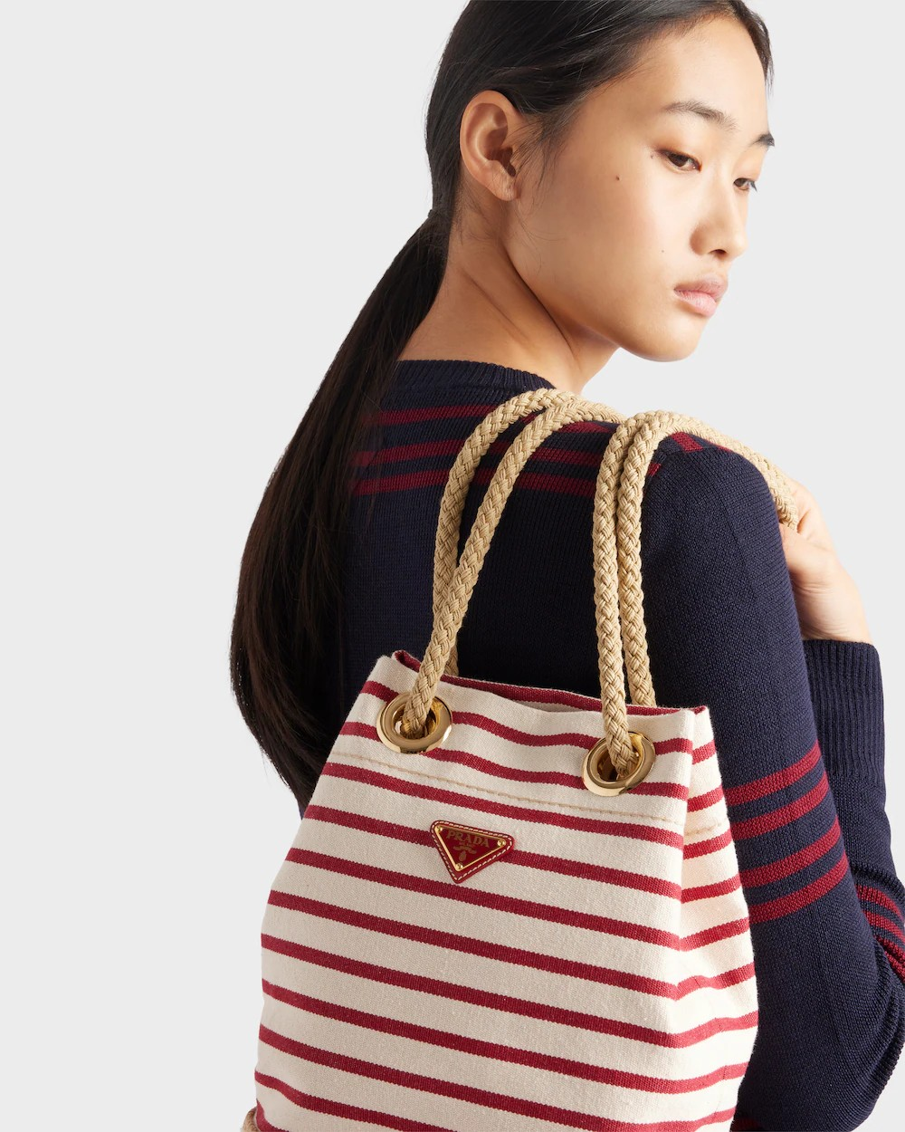 Be the first to review “Prada Mariner small striped fabric bucket bag” Cancel reply
