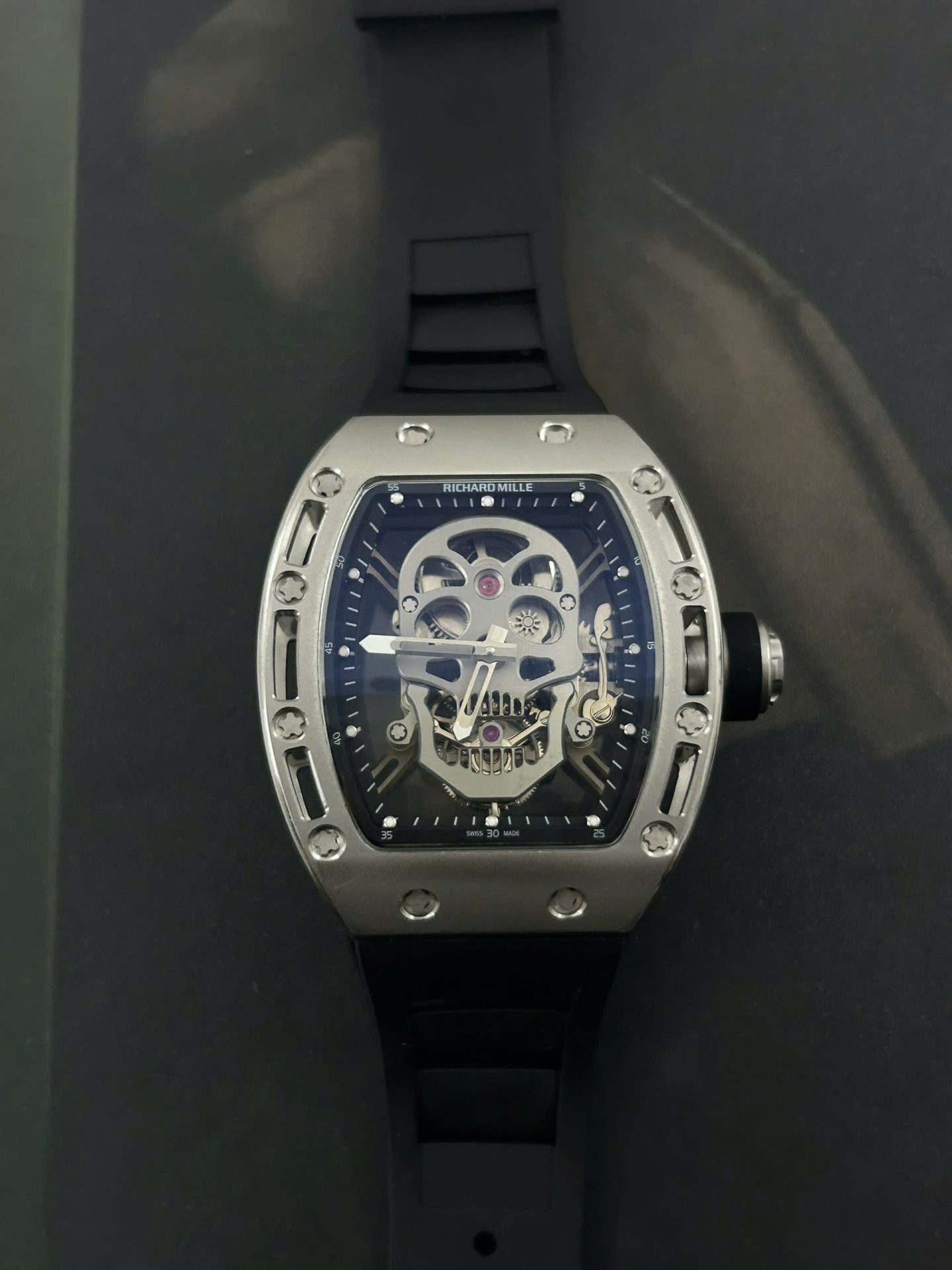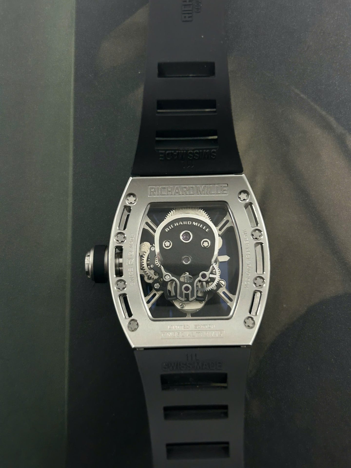 Richard Mille Luxury Fake Watches RM052 Flyback Tourbillon Skull Rubber Strap 43mm