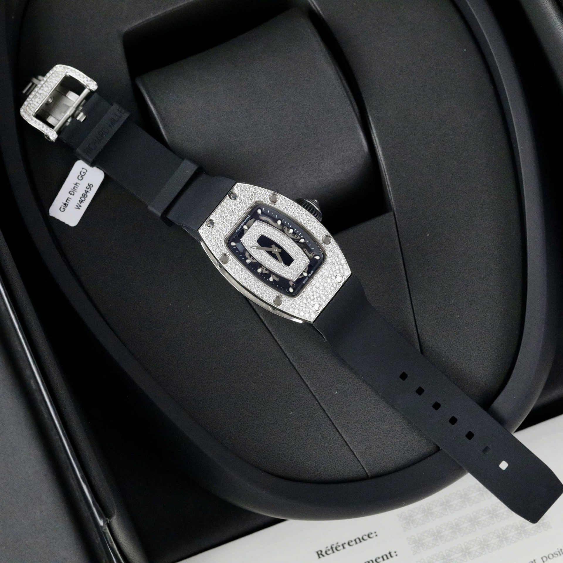 With its classic. luxurious. and highly aesthetic design. the Richard Mille RM007 women’s watch. set with full diamonds on the bezel and clasp. is truly a worthy choice for distinguished ladies. Whether at lavish events or professional meetings. you will always stand out and shine with this exquisite diamond-studded women’s watch.