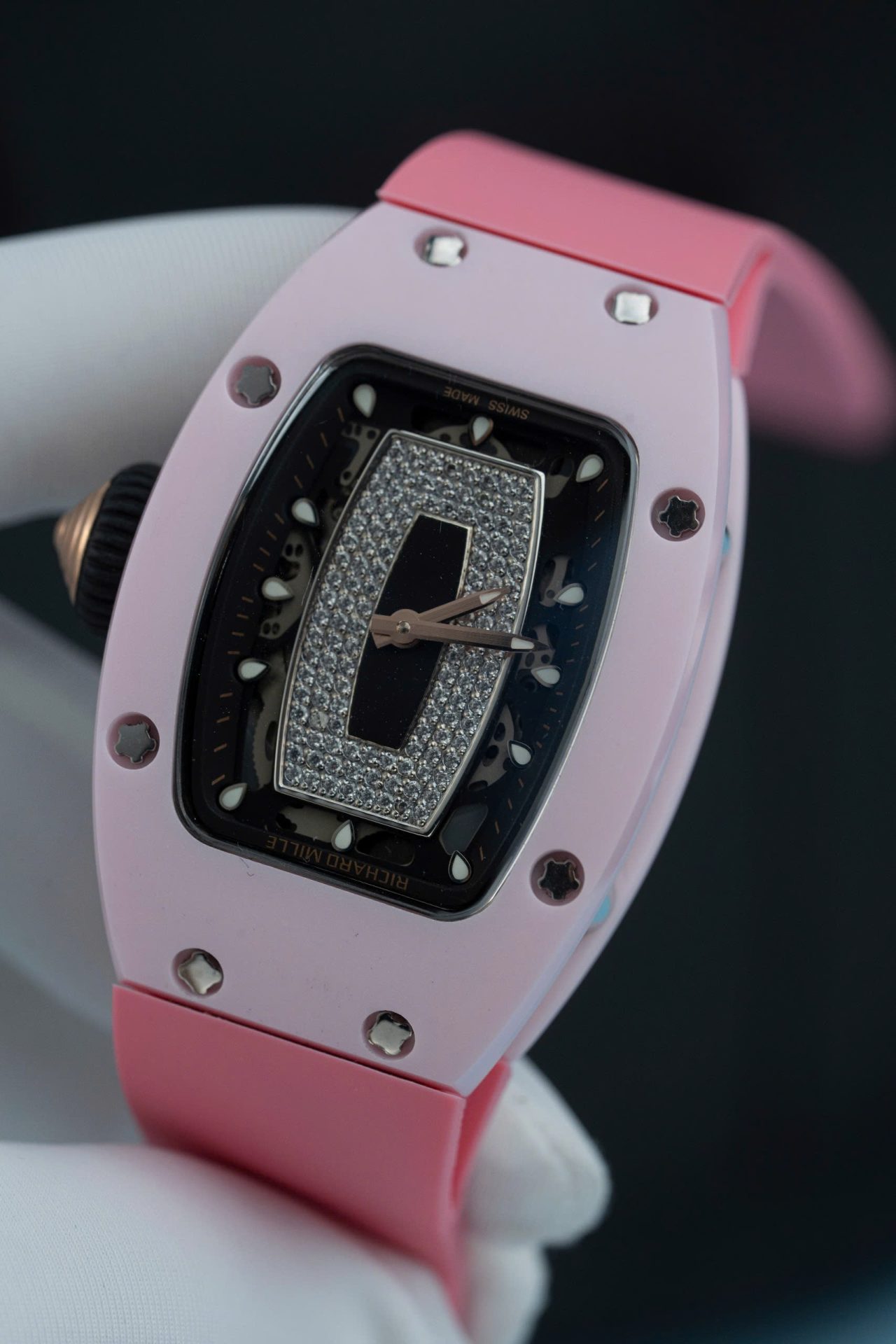 Richard Mille RM07-01 Ceramic Fake Watches Pink Rubber Strap 36mm