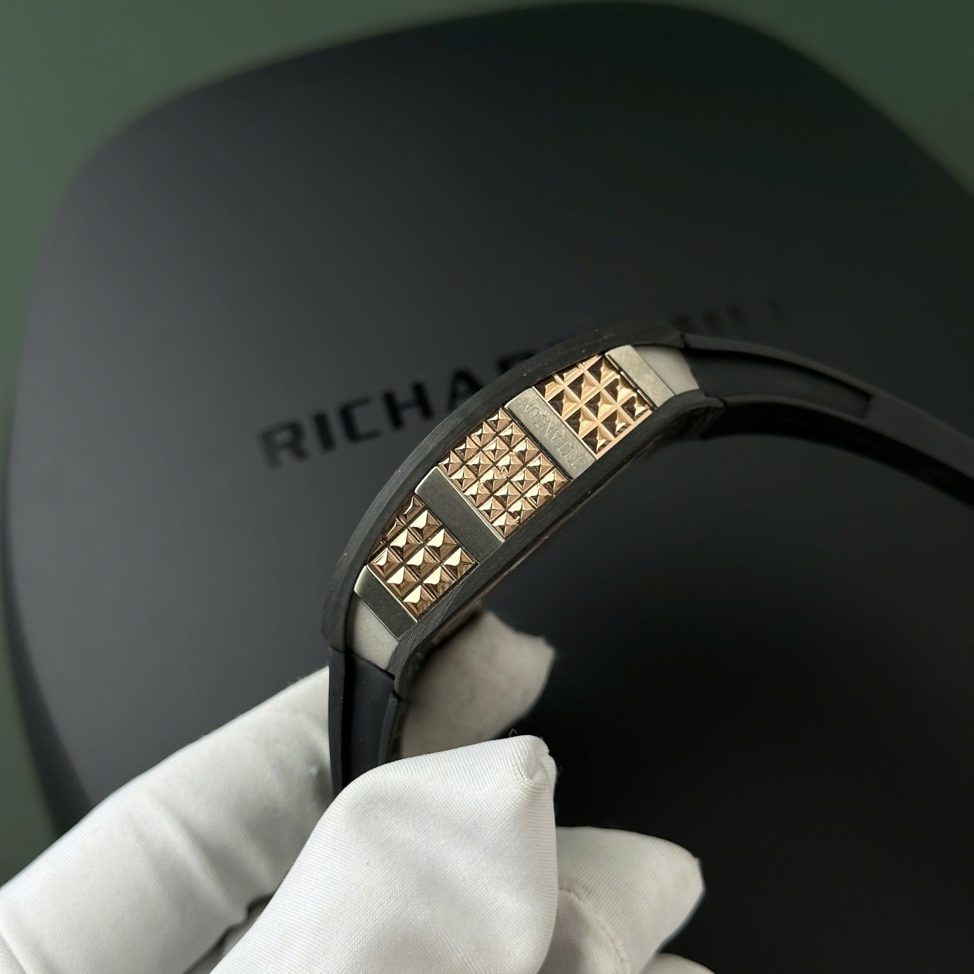 Richard Mille is renowned for its striking designs. and the RM66 Flying Tourbillon with its full carbon case further highlights this distinction. The carbon material not only offers exceptional durability but also makes the watch lightweight. providing a comfortable wearing experience throughout the day. With a case size of 42.7×49.9mm. it fits well on all wrists. emphasizing a strong and bold character.