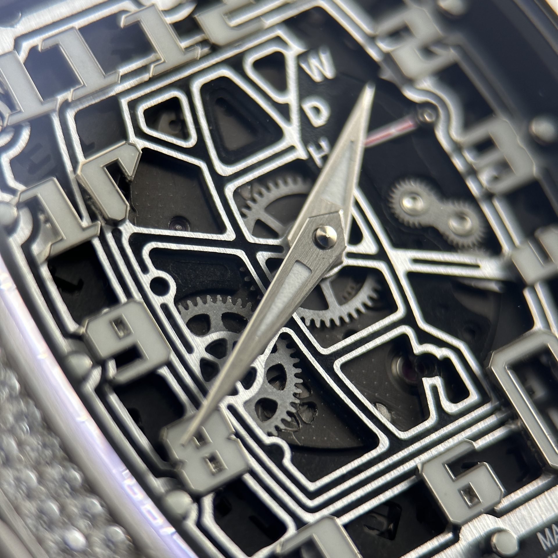 Richard Mille RM67-01 Luxury Fake Watches Skeleton Dial Case Full Moissanite Diamonds Custom 38.7×47.5mm