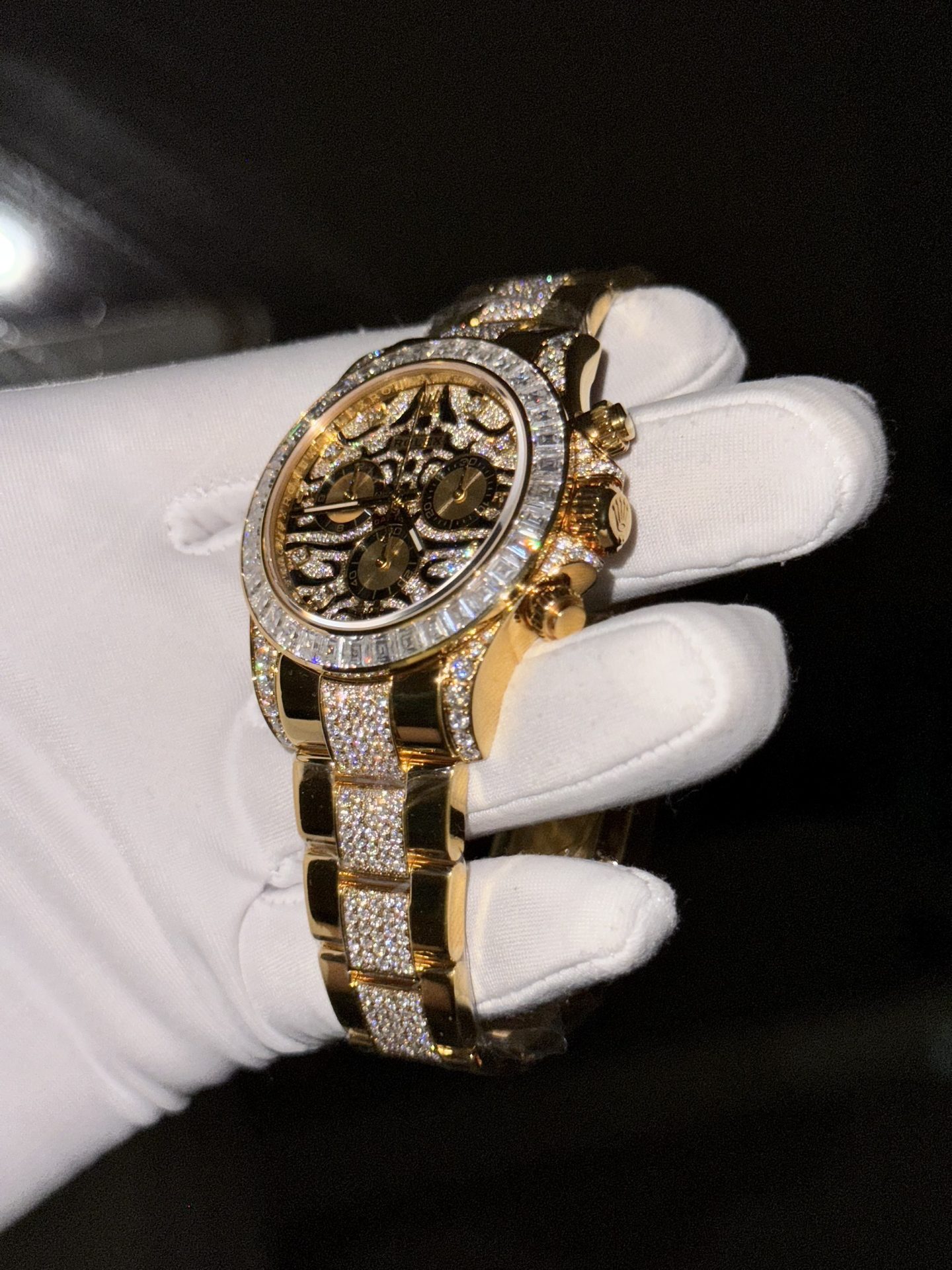 Rolex Best Replica Watch Daytona Eye Of Tiger Gold Wrapped Moisasnite Diamonds Custom 40mm