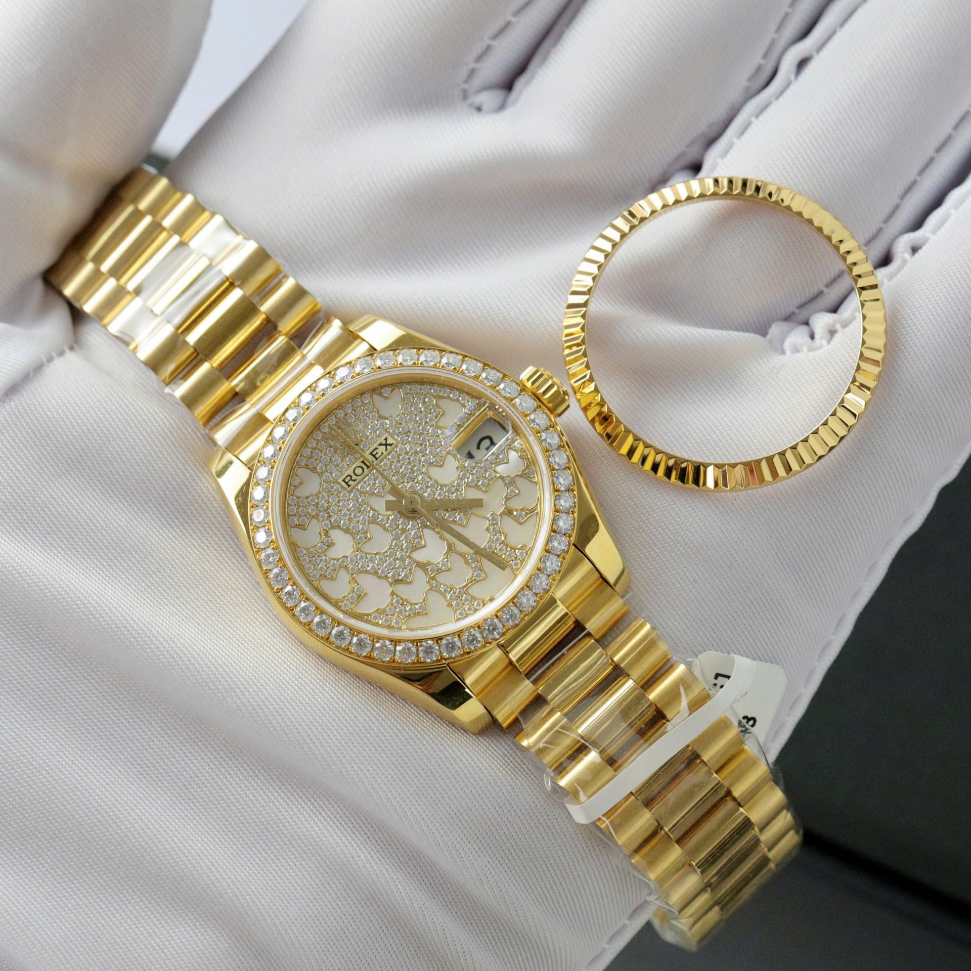 Rolex DateJust Butterfly Dial Custom Gold Wrapped 18K + Diamonds Moissanite 31mm