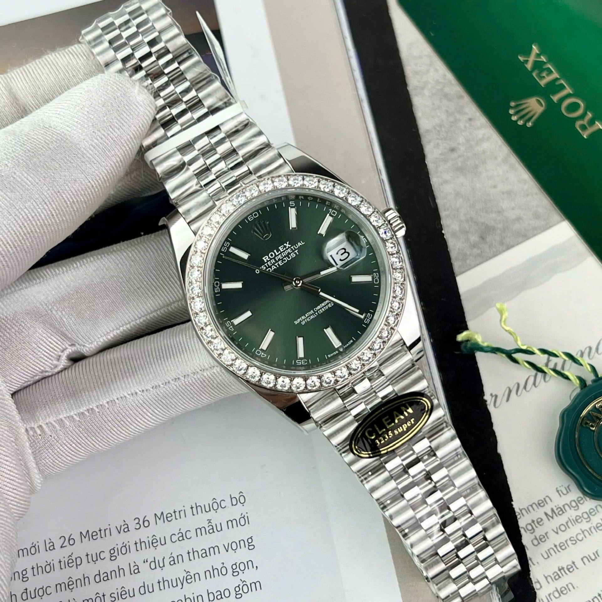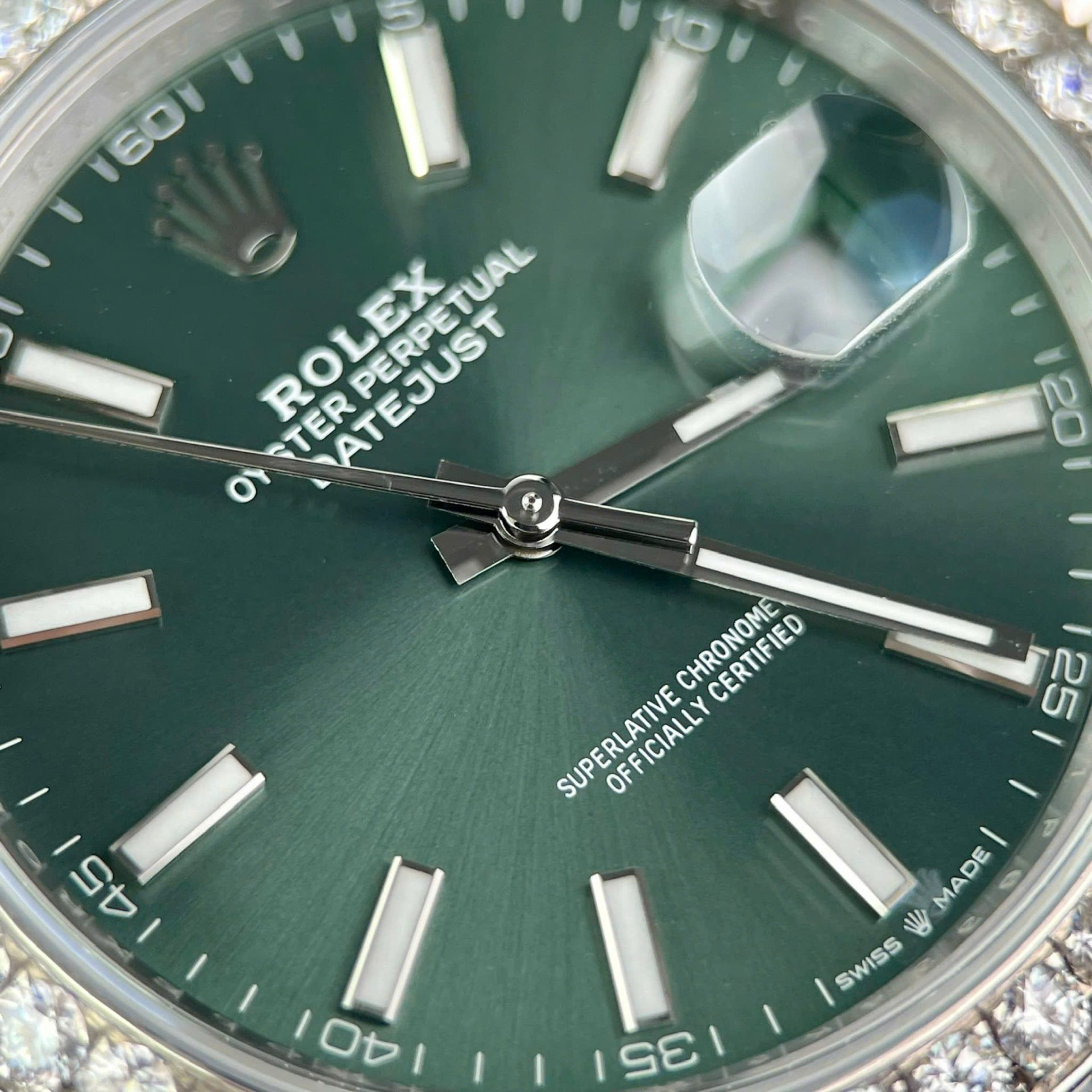 Rolex DateJust Green Dial Copies Watch Moissanite Diamonds Custom Clean Factory 41mm