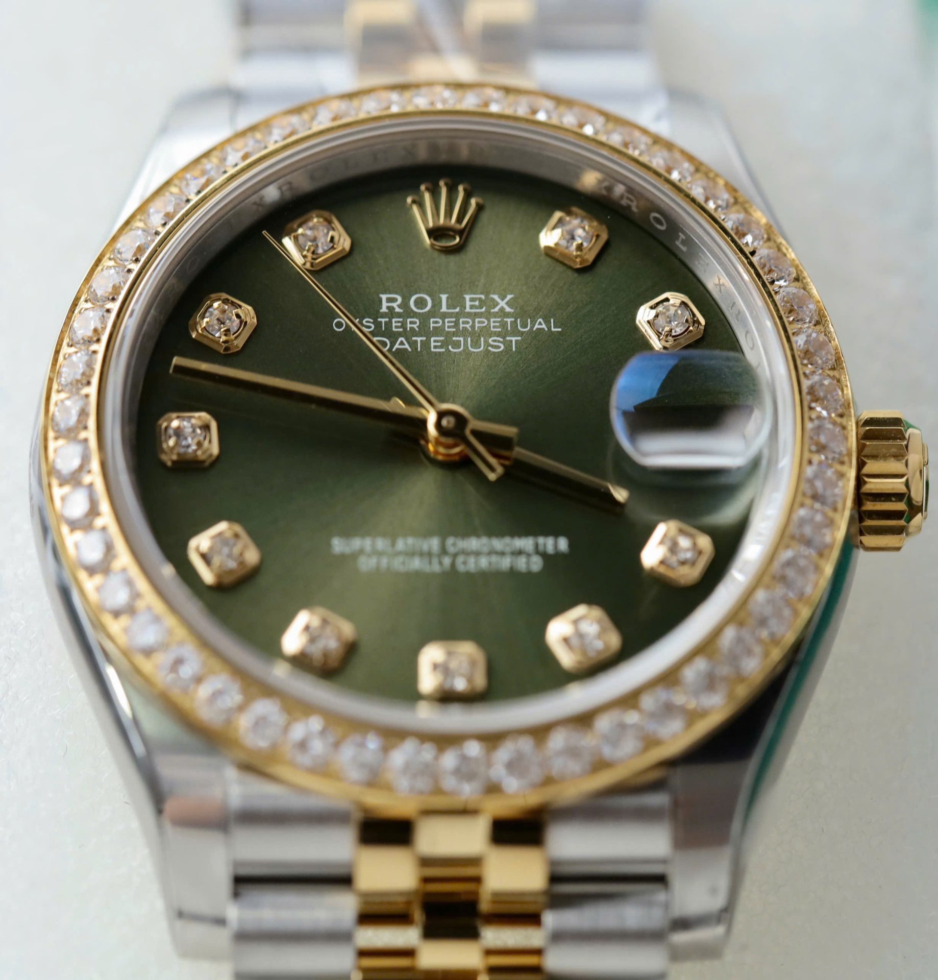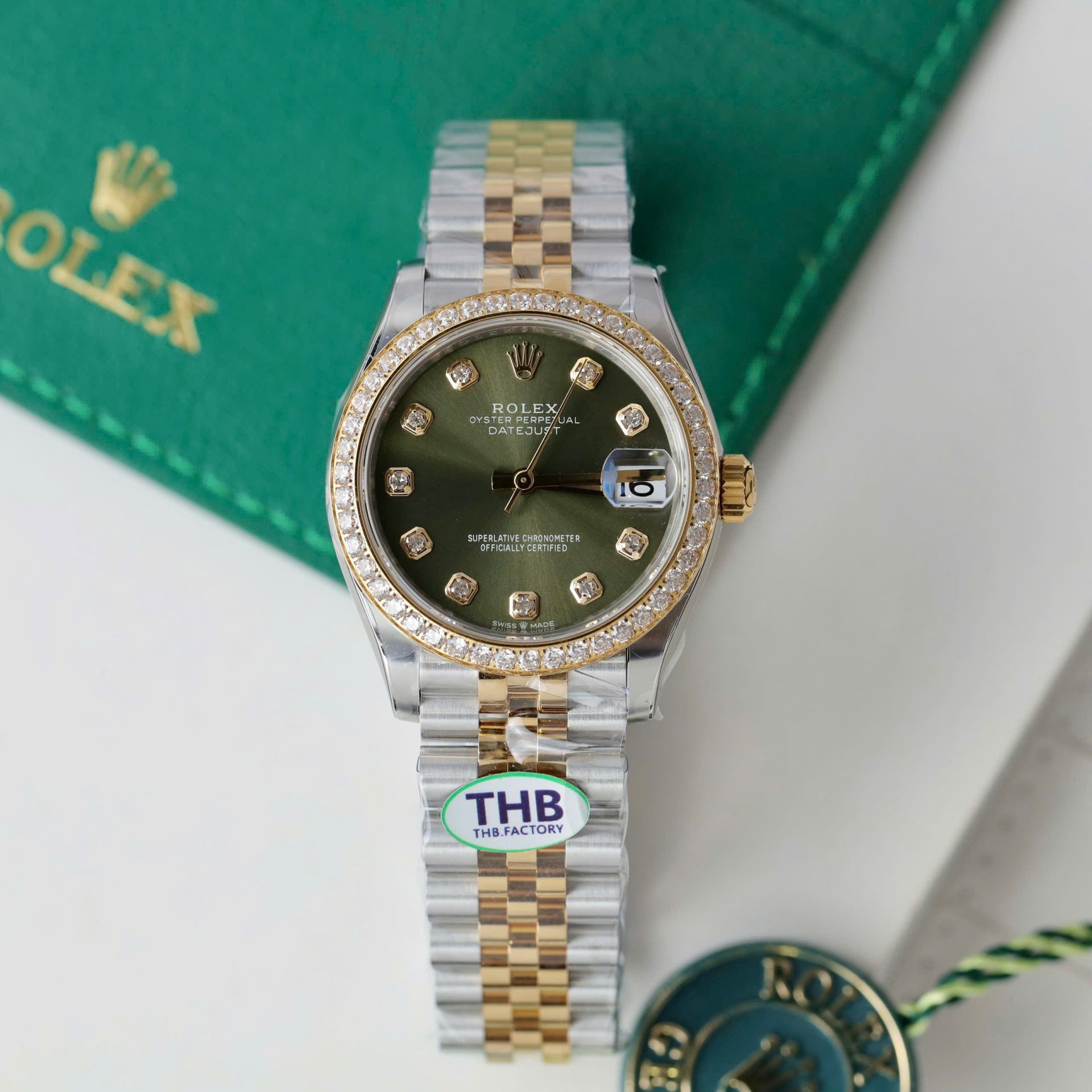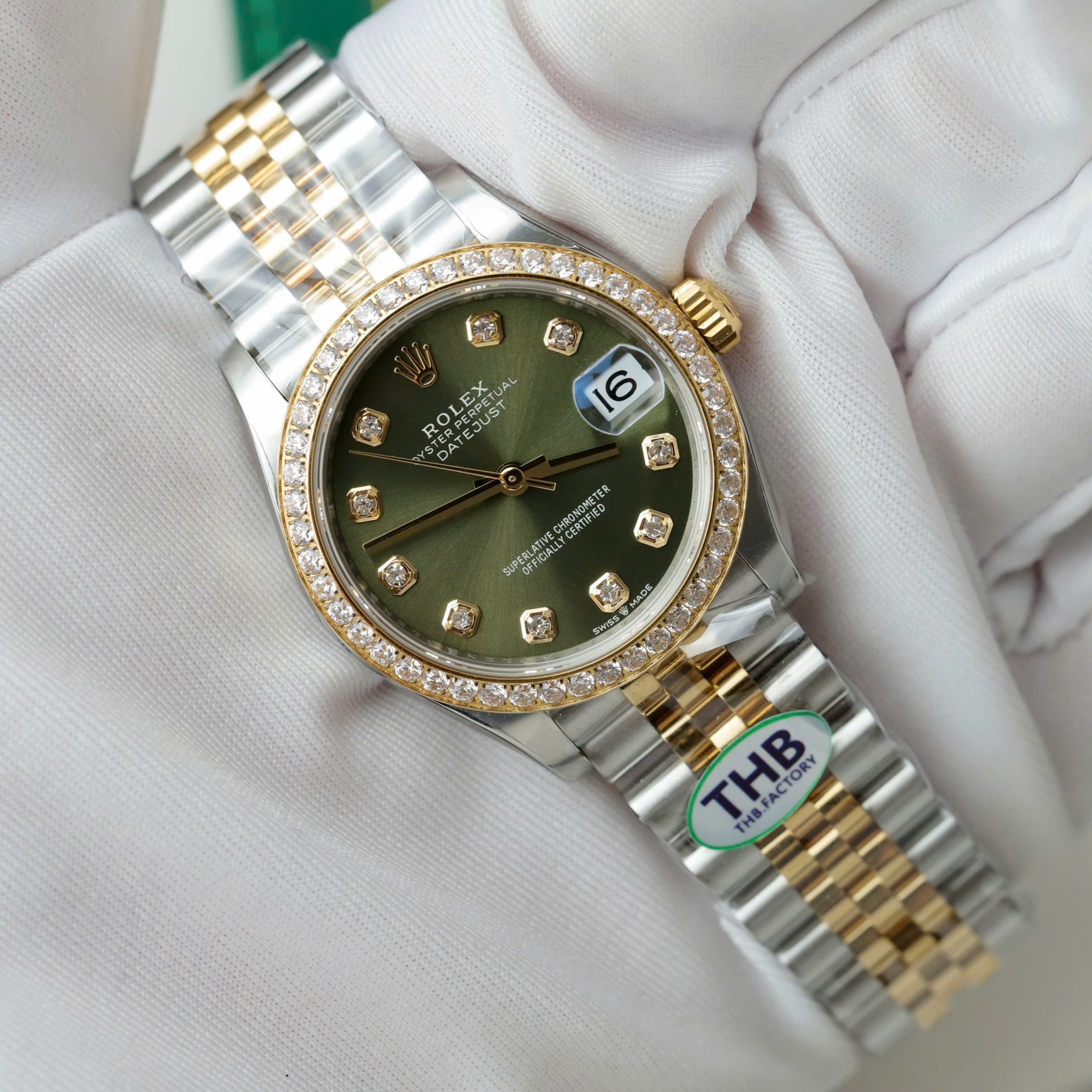 Rolex DateJust Green Dial Replica Watches Bezel Diamonds CZ THB Factory 31mm