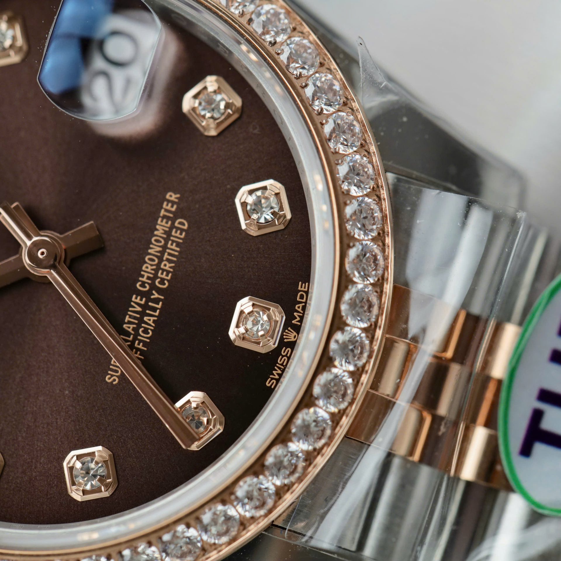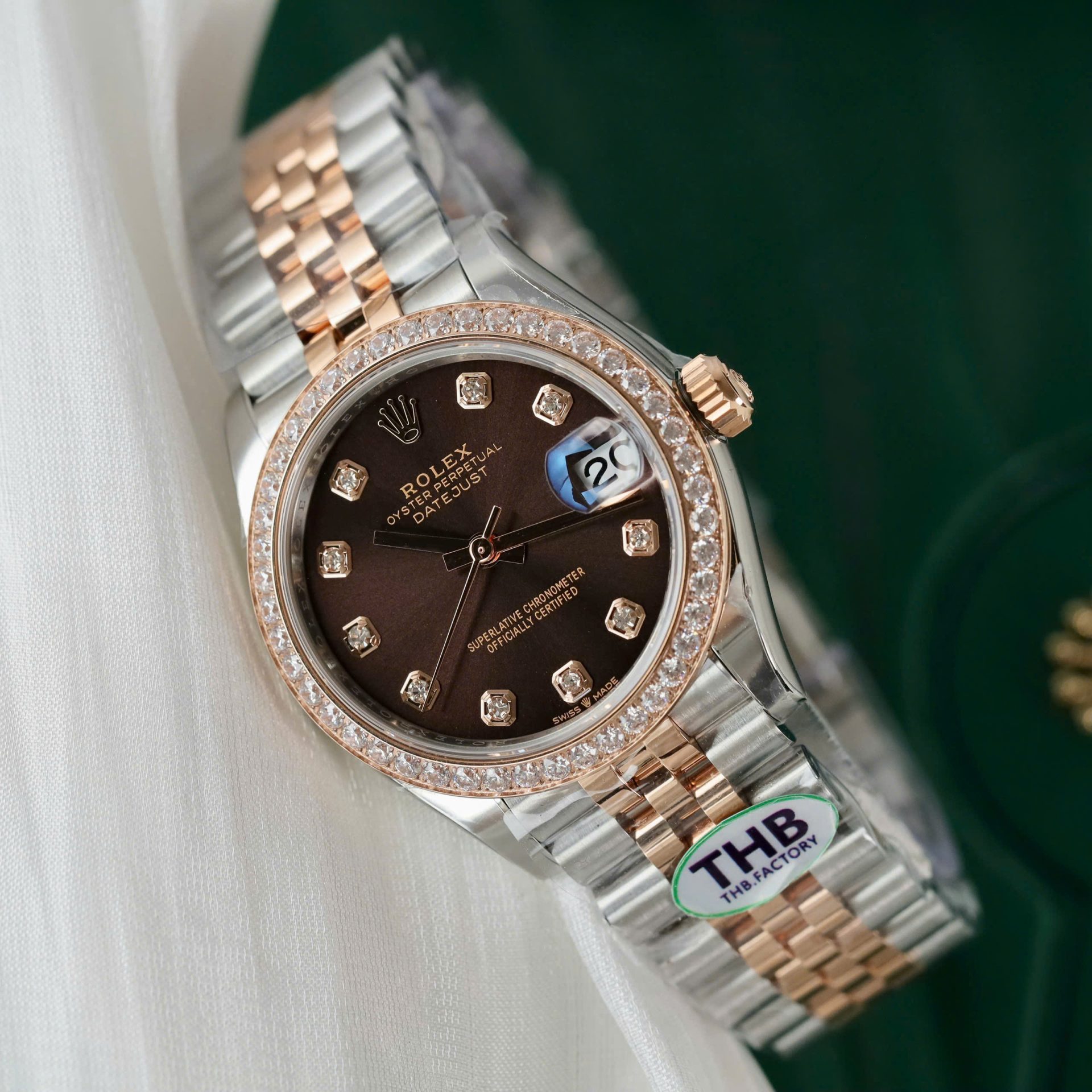 Rolex DateJust High End Watch Replicas Chocolate Dial Bezel Diamonds CZ THB Factory 31mm