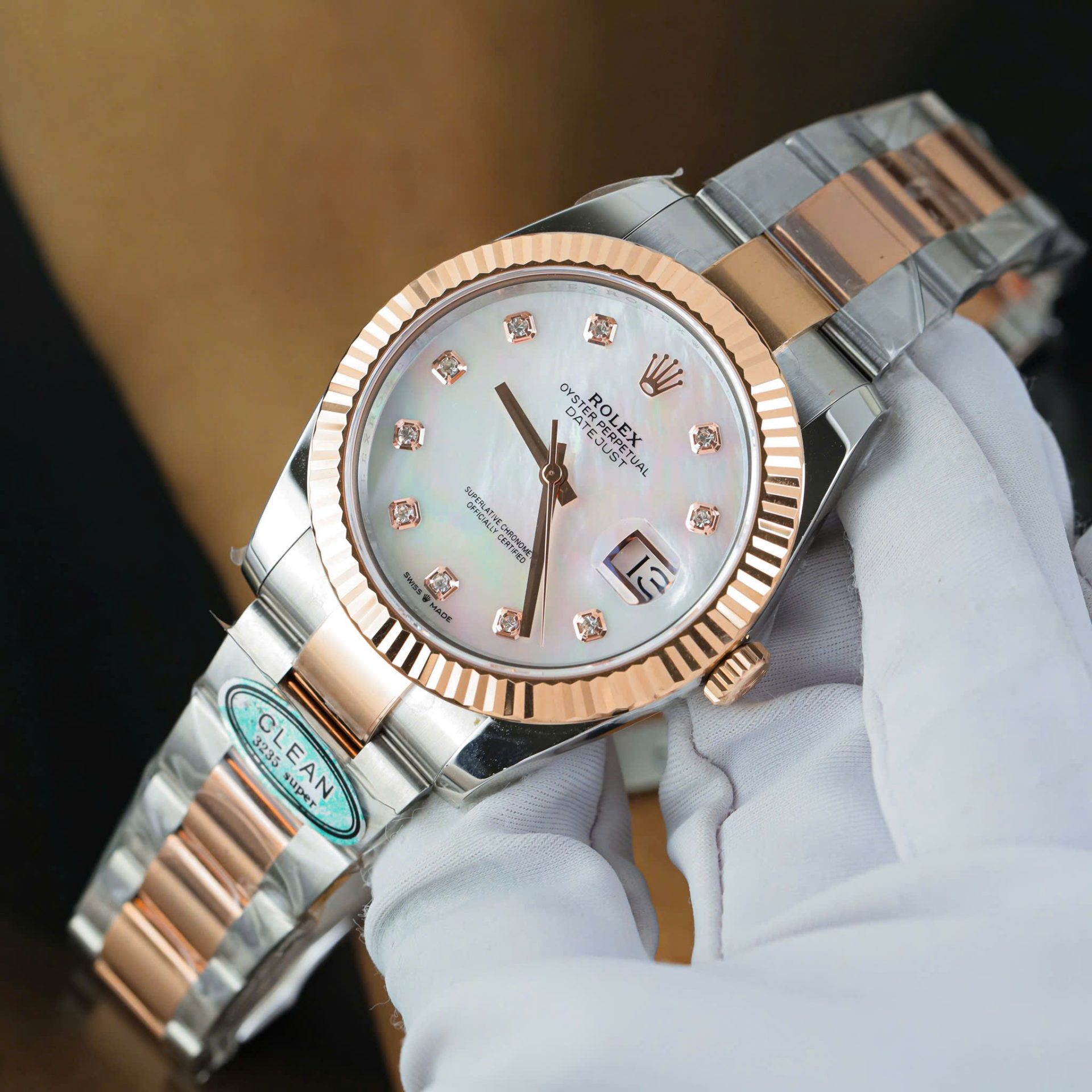 Rolex DateJust MOP Dial Replica Watches Demi Rose Gold Oyster Strap Clean Factory 41mm