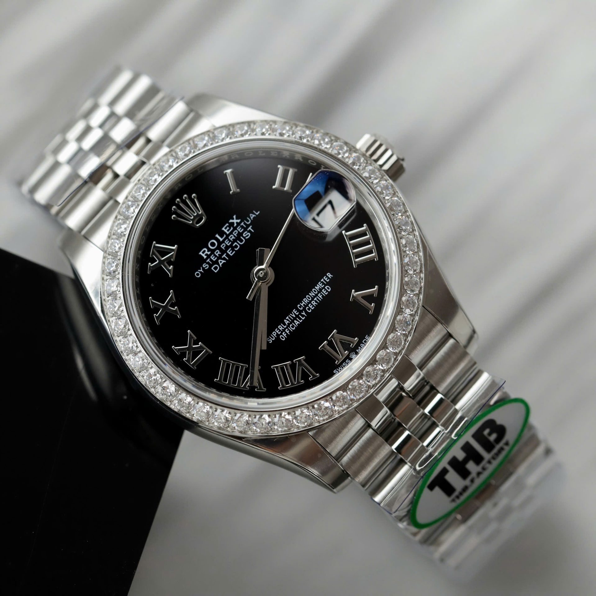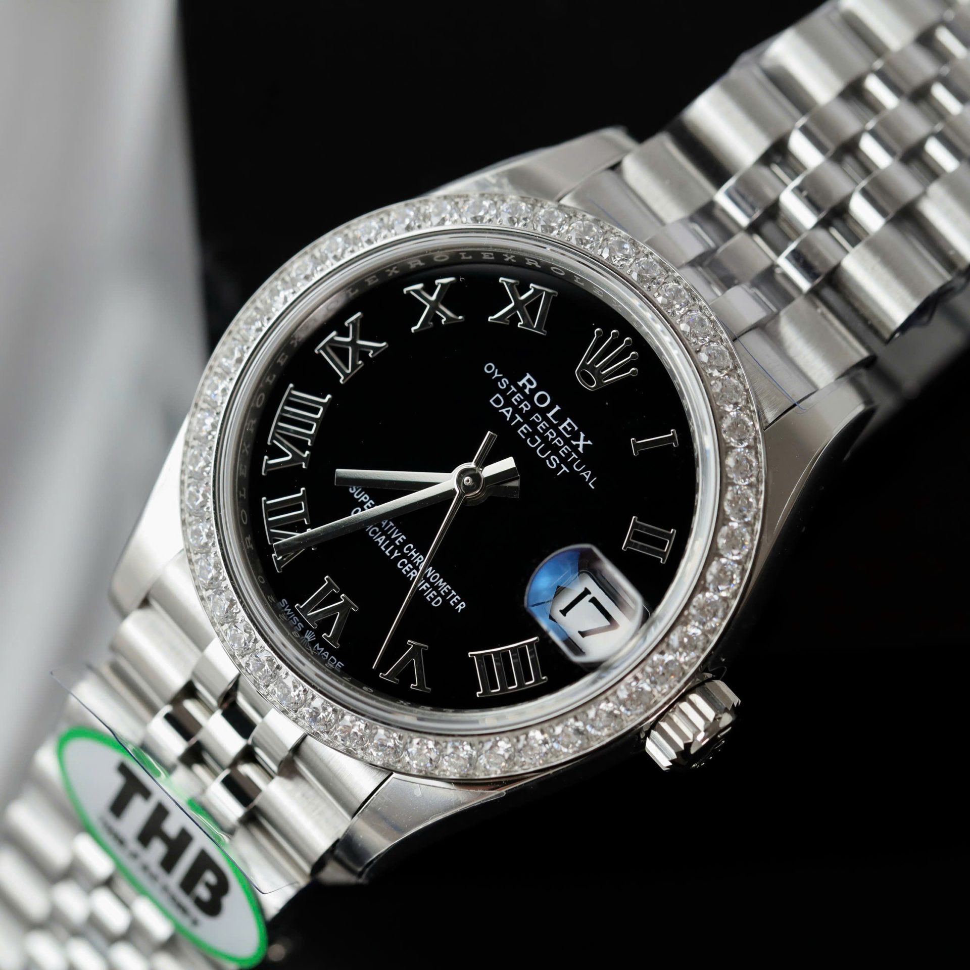Rolex DateJust Replica Watches Black Dial Bezel Moissanite Diamonds CZ THB Factory 31mm