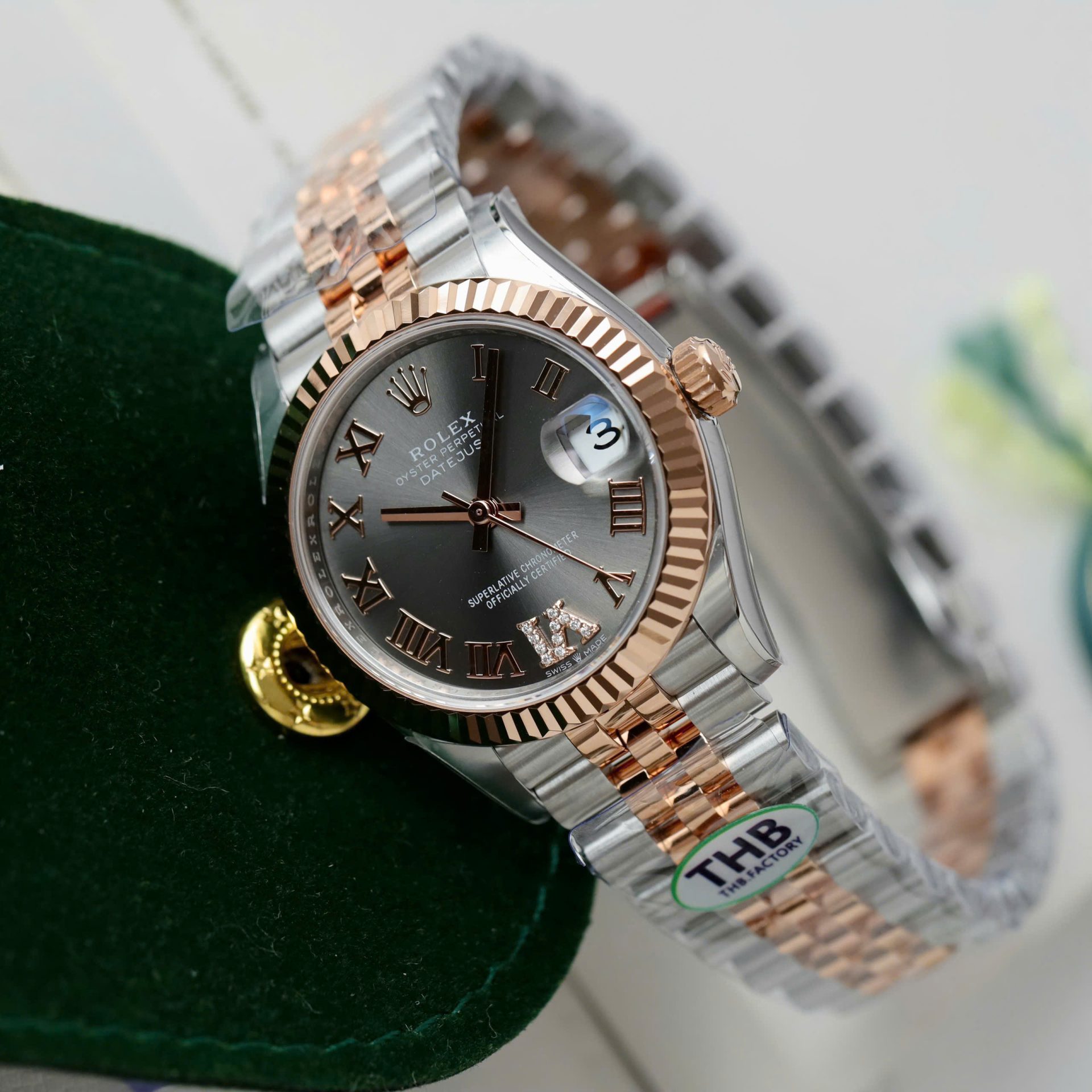 Rolex DateJust Women Demi Rose Gold Copies Watches Gray Dial THB Factory 31mm