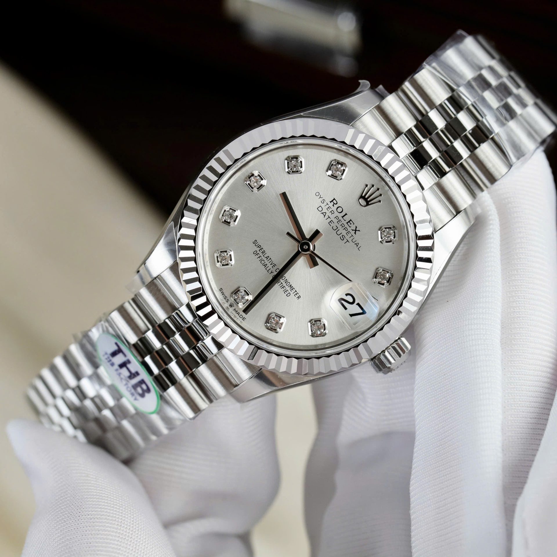 Rolex DateJust Women Replica Watches Sliver Dial Swiss Automatic Movement THB Factory 31mm