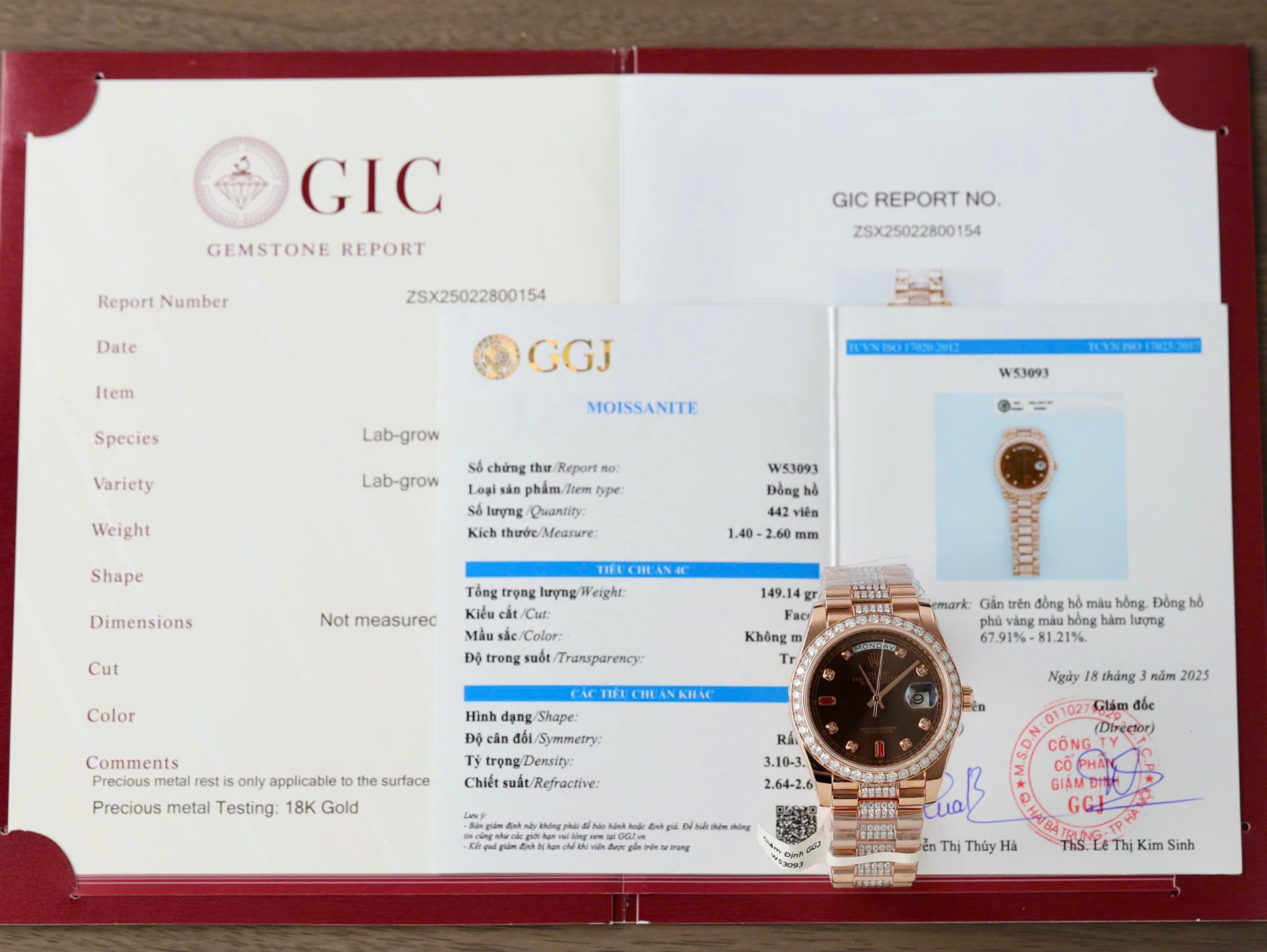 Rolex Day-Date Chocolate Dial Imitation Watches Gold Wrapped + Moissanite Diamonds Custom 36mm