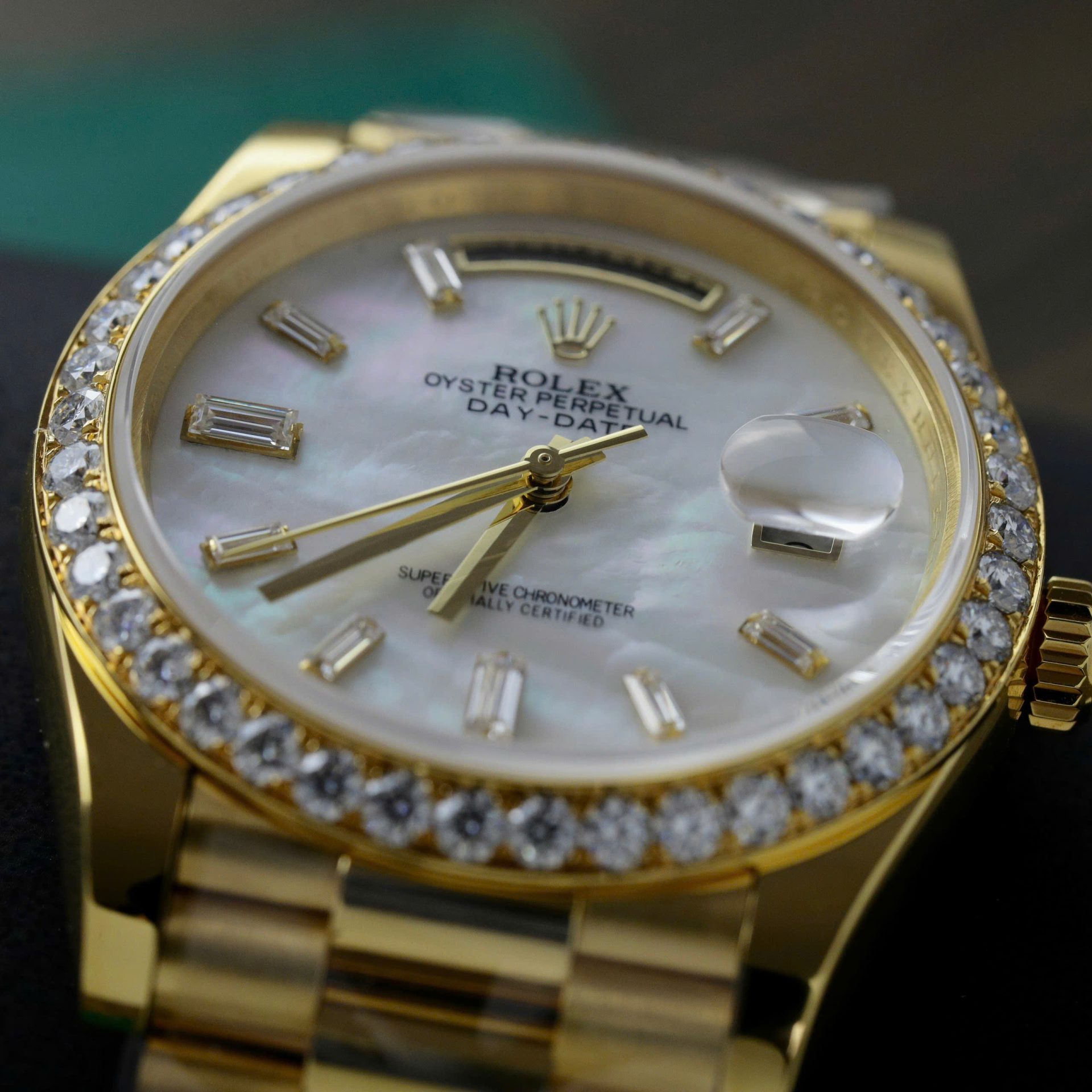 Rolex Day-Date MOP Dial Imitation Watches 18K Gold Wrapped + Bezel Moissanite Diamonds GM Factory 40mm