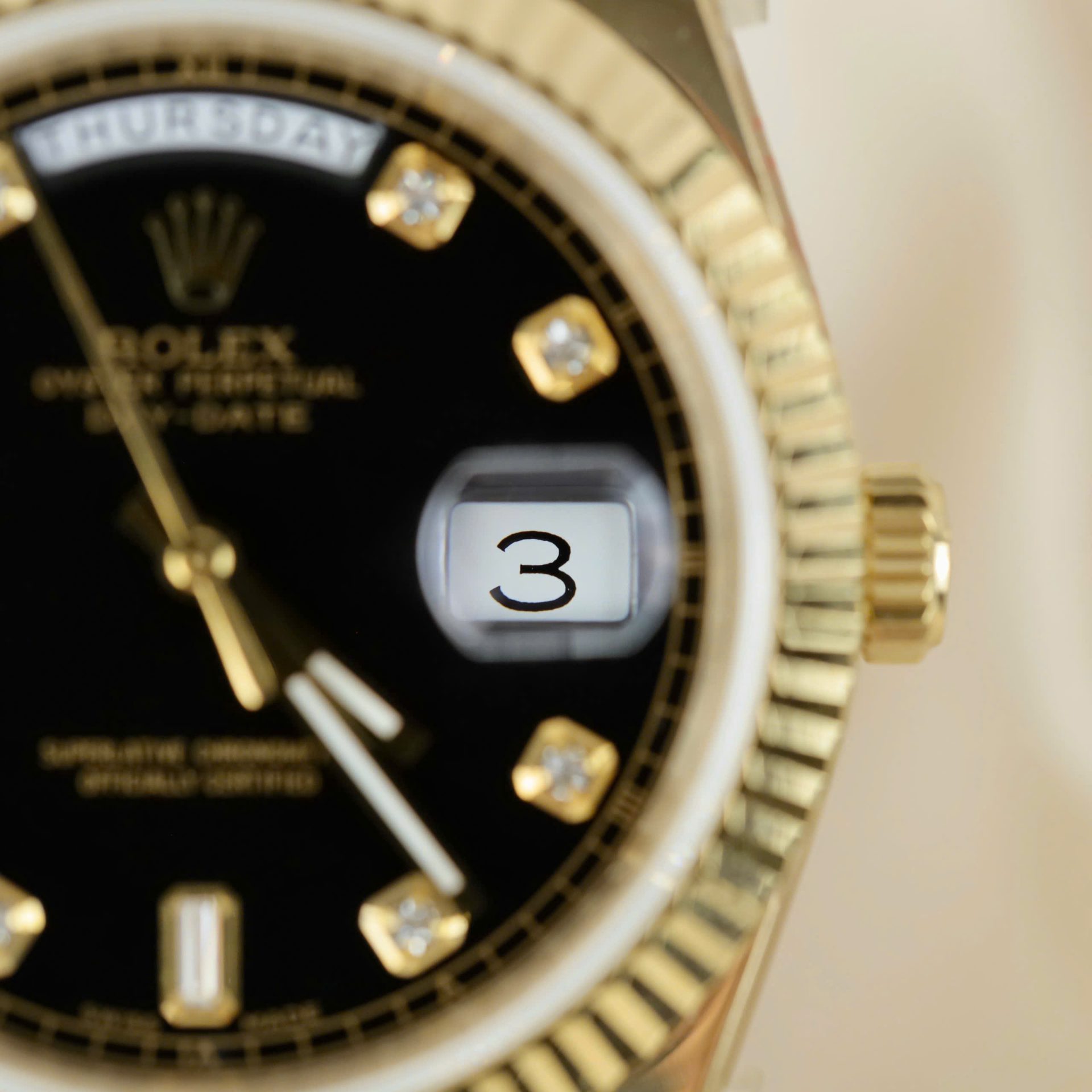 Rolex Day-Date Replica Watches Black Dial President Strap GM Factory 40mm
