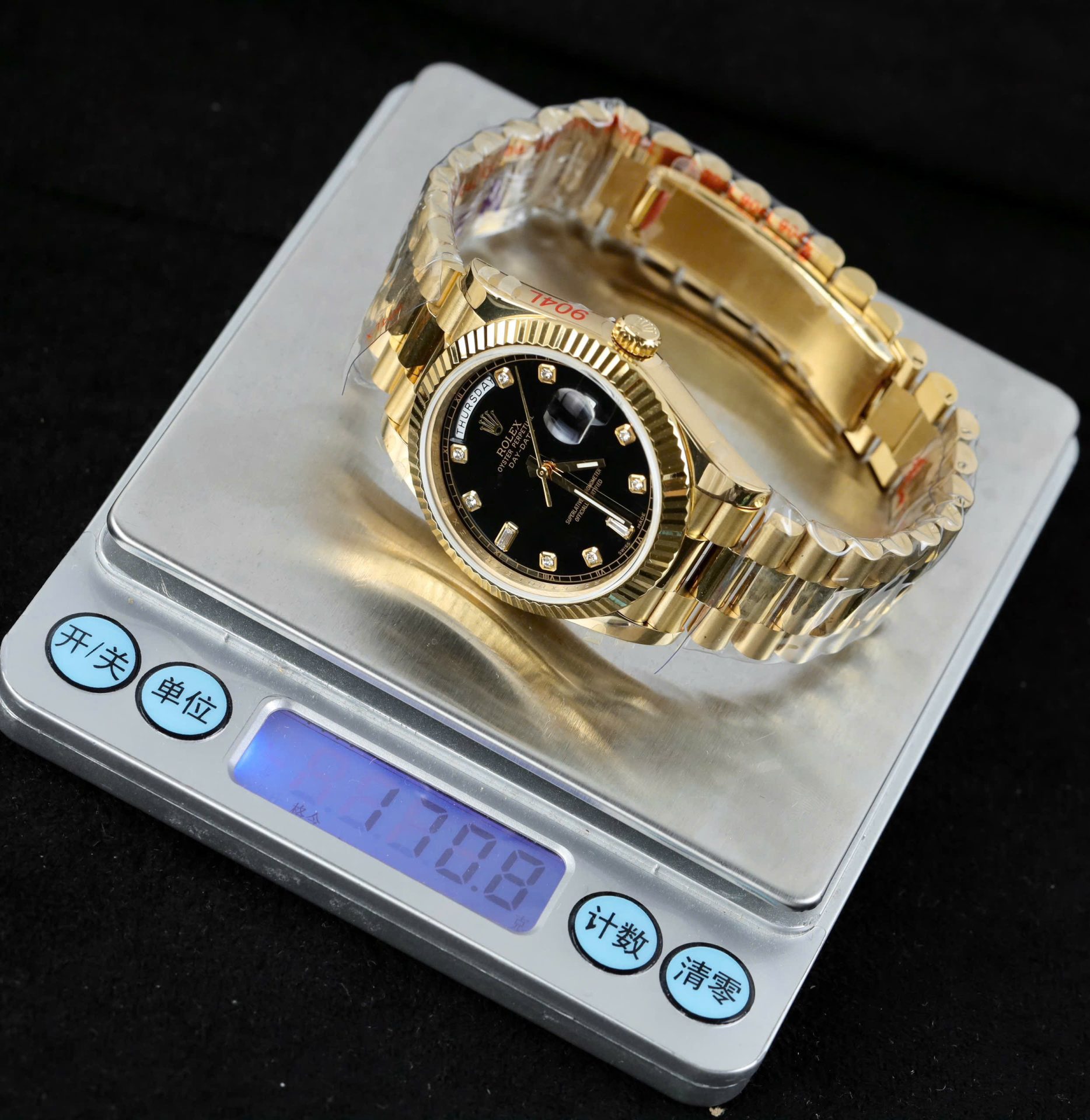 Rolex Day-Date Replica Watches Black Dial President Strap GM Factory 40mm