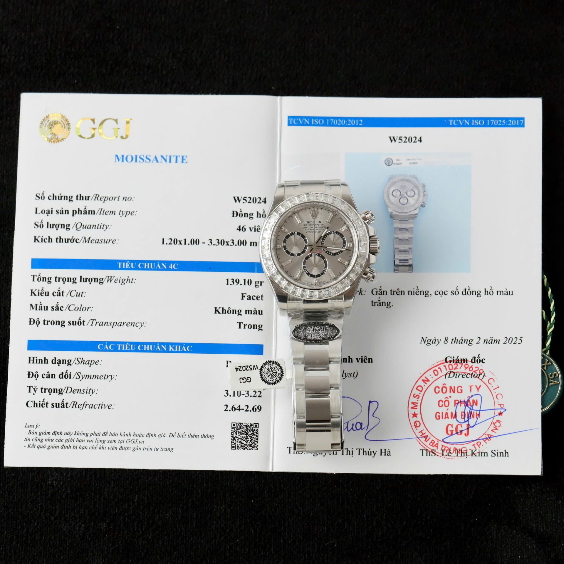 | Chất liệu | Thép không gỉ + Moissanite |