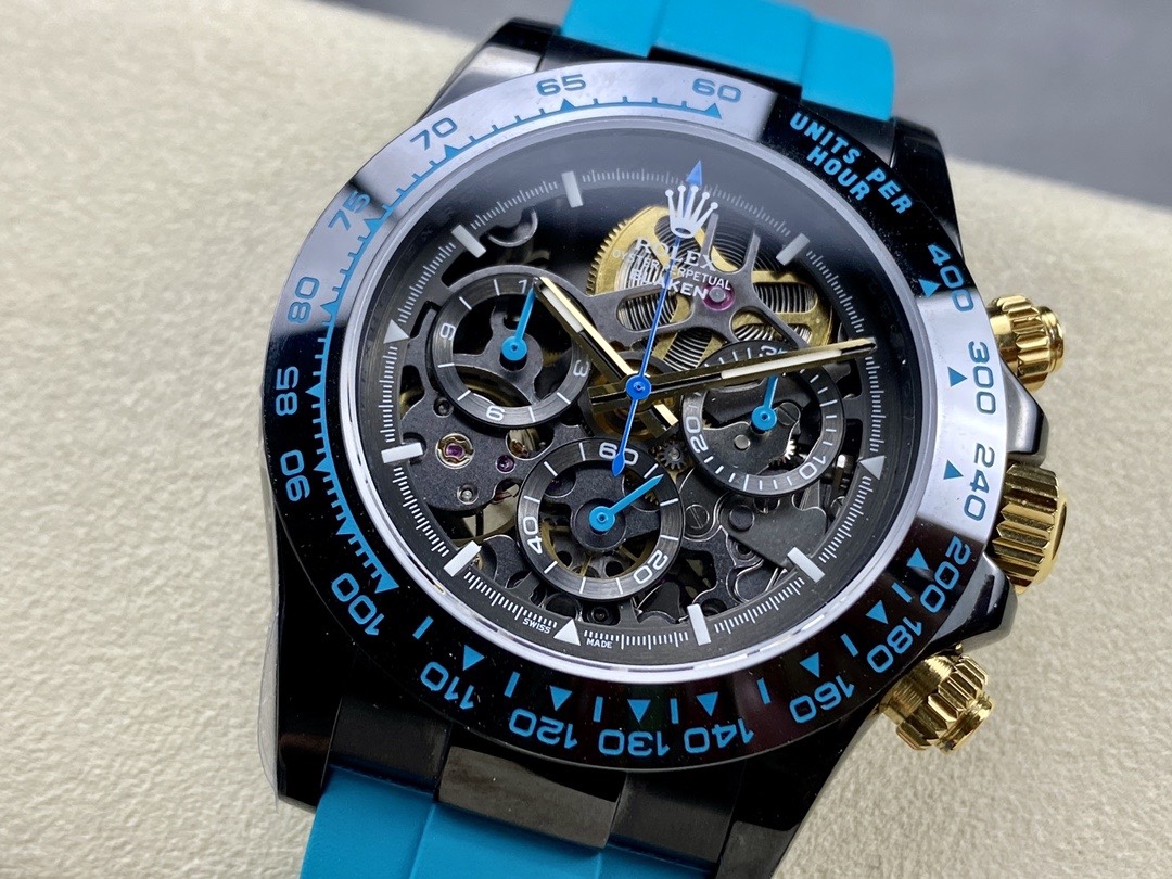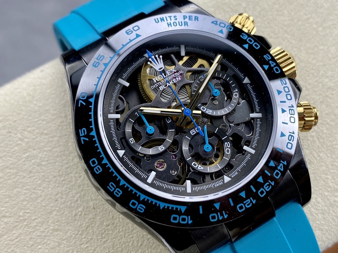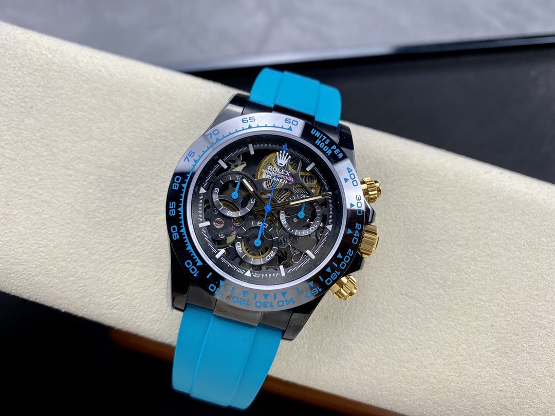 Rolex Daytona By Blaken Luxury Fake Watches Skeleton Dial Rubber Strap Cyan 40mm