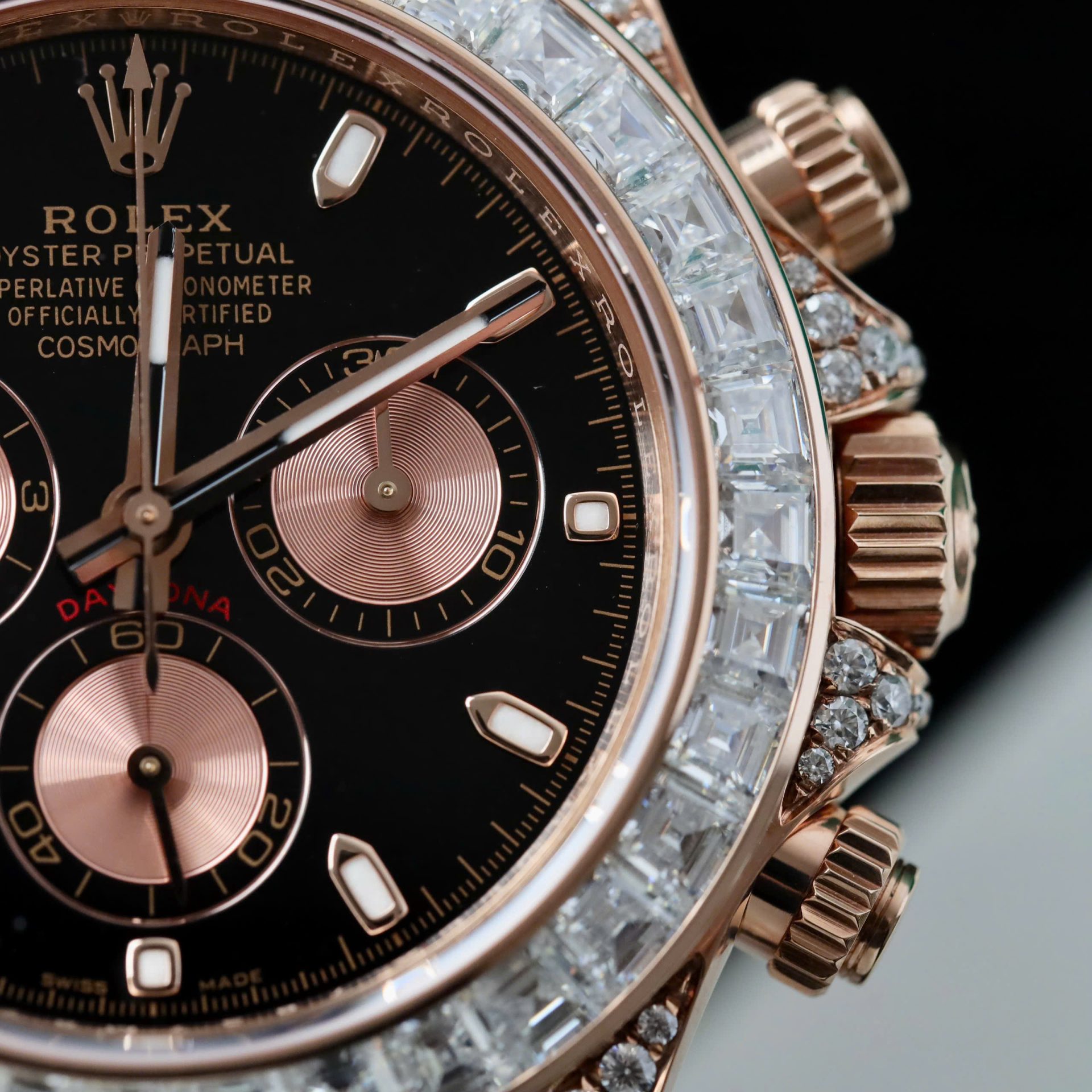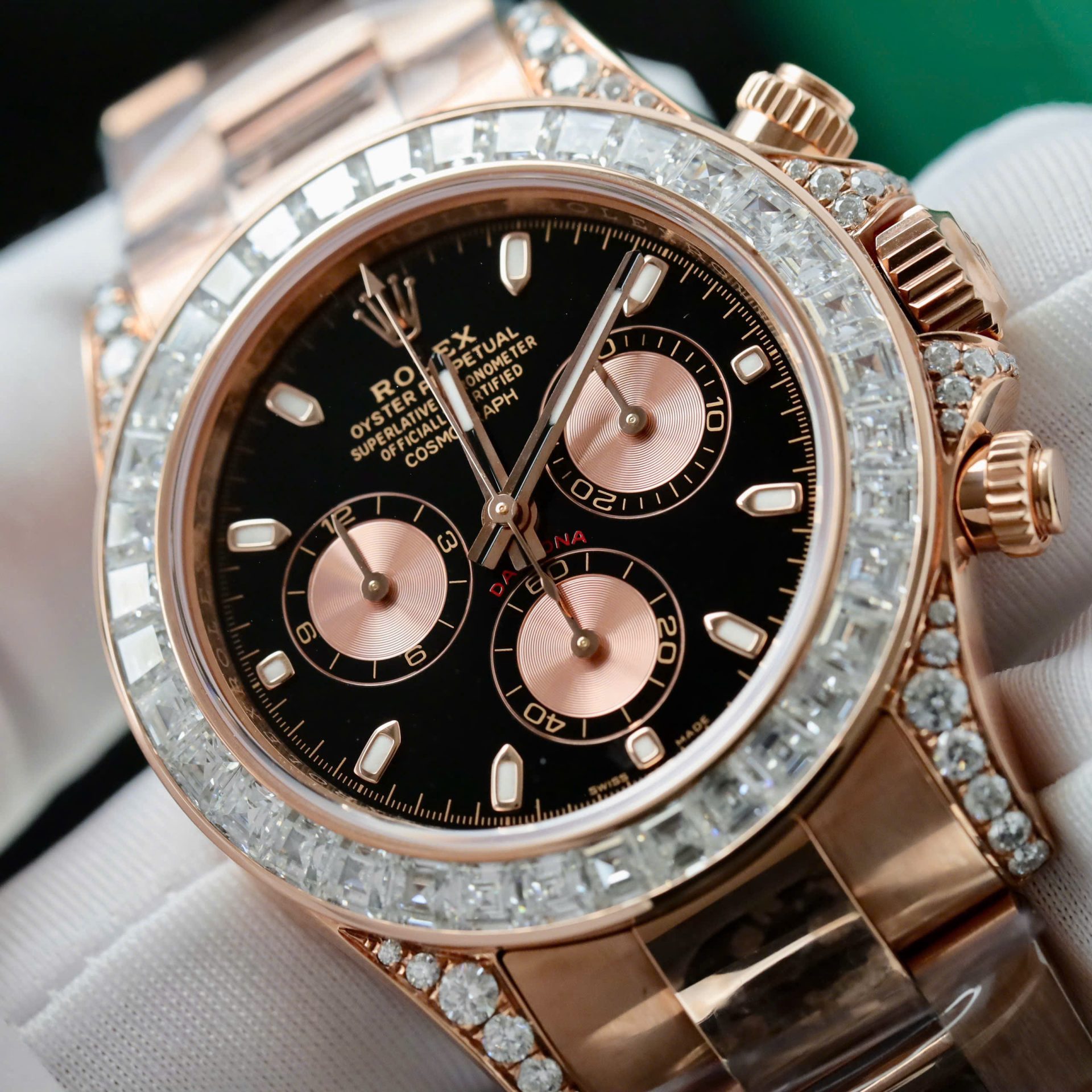 Rolex Daytona Dial Black Copies Watches Gold Wrapped + Diamonds Moissanite Baguette 40mm