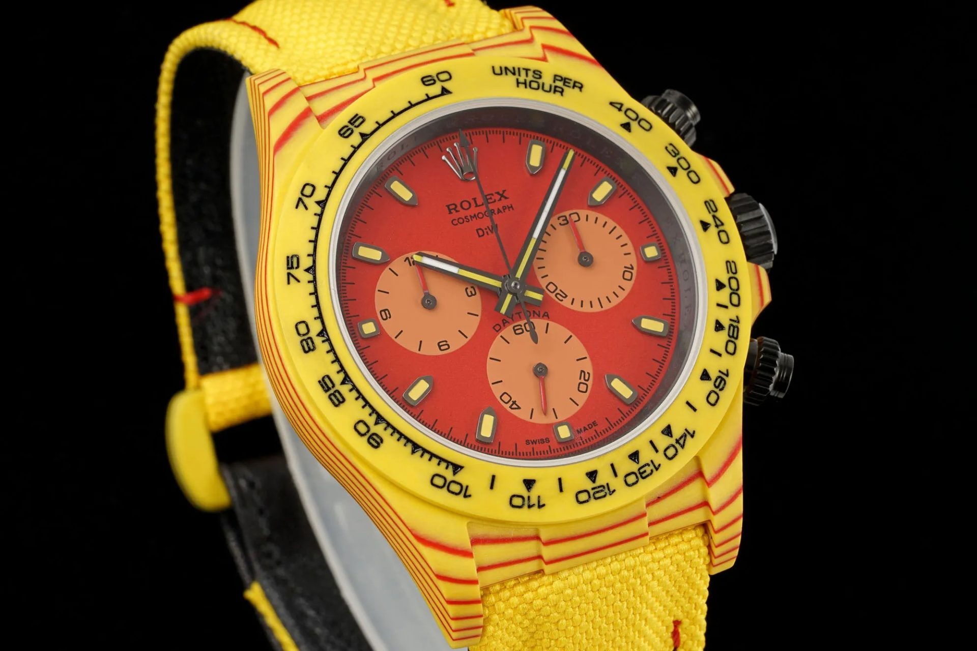 Rolex Daytona Diw Carbon Fiber Volcano Yellow Luxury Fake Watches Best Quality 40mm