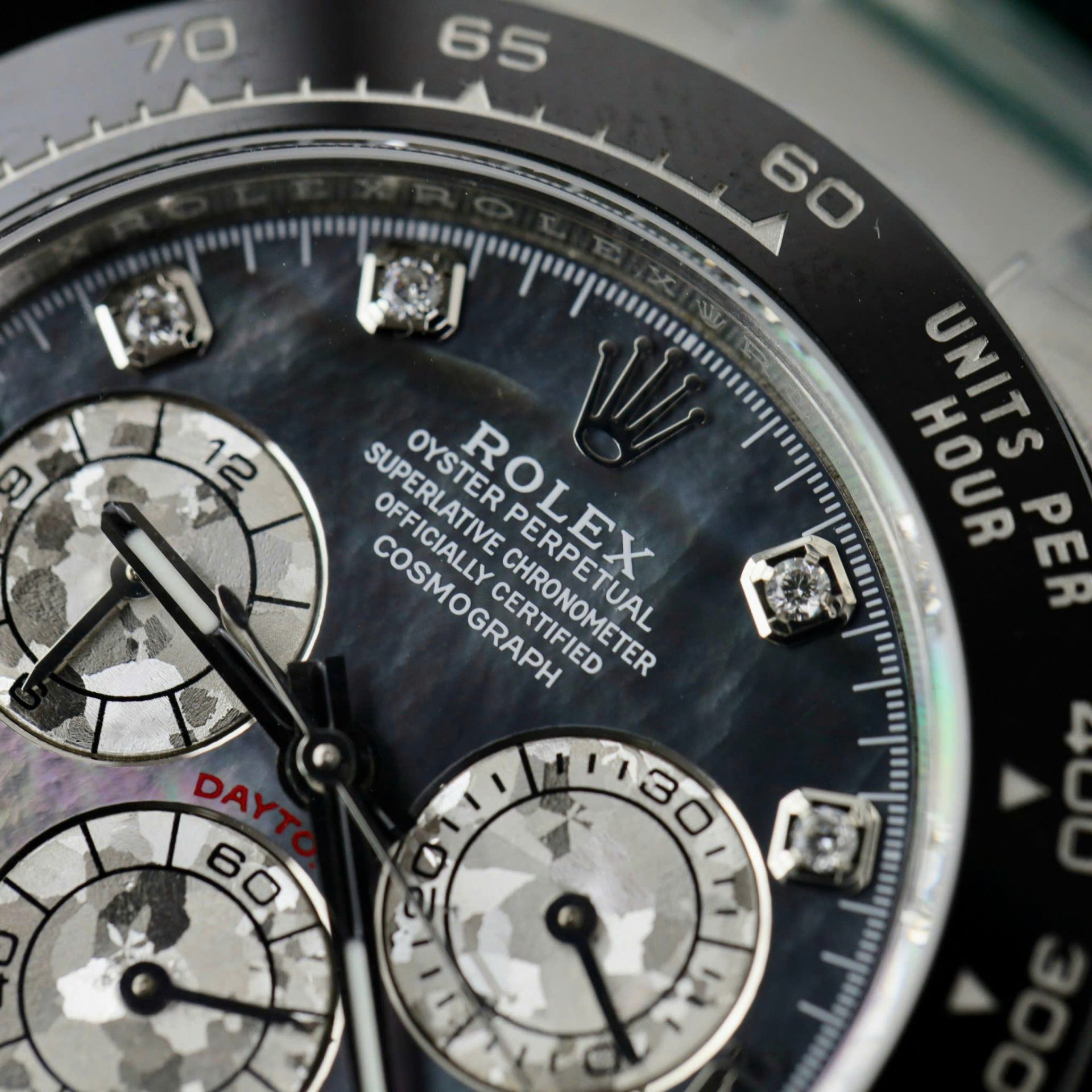 Rolex Daytona Replica Watch Dial Mother Of Pearl Custom Moissanite Diamonds 40mm