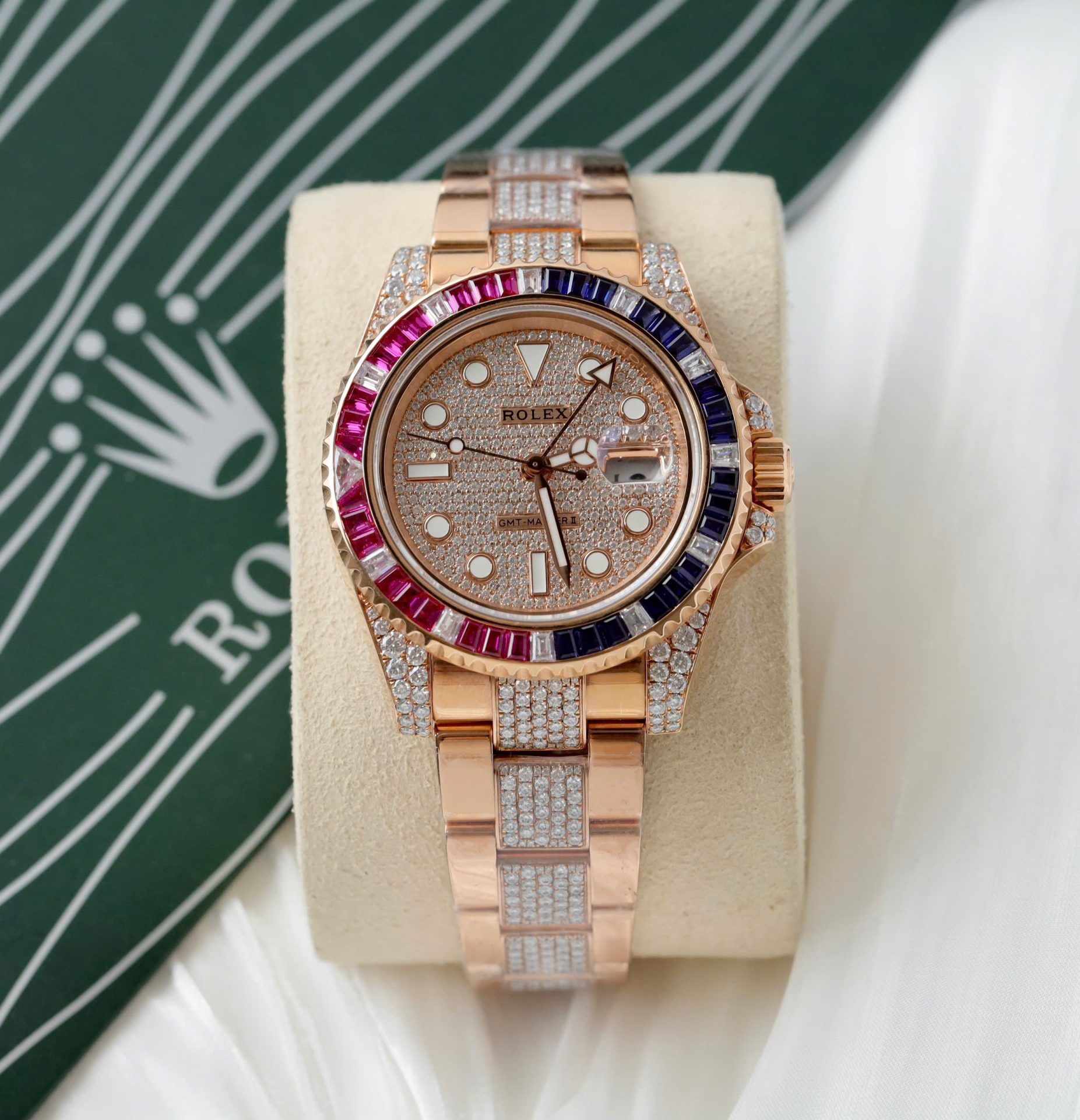 Rolex GMT-Master II 126755 SARU-DIAO Gold Wrapped Moissanite Sapphire Replica Watch 40mm