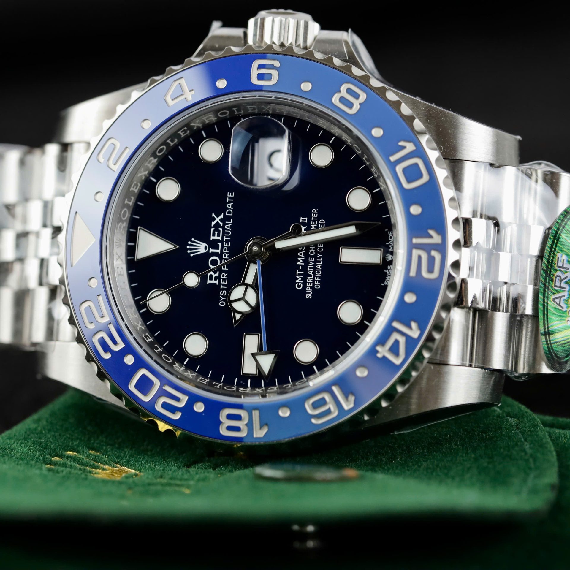 Be the first to review “Rolex GMT-Master II Replica Watches Black Dial Bezel Blue Ceramic Jubilee Strap AR Factory 40mm” Cancel reply
