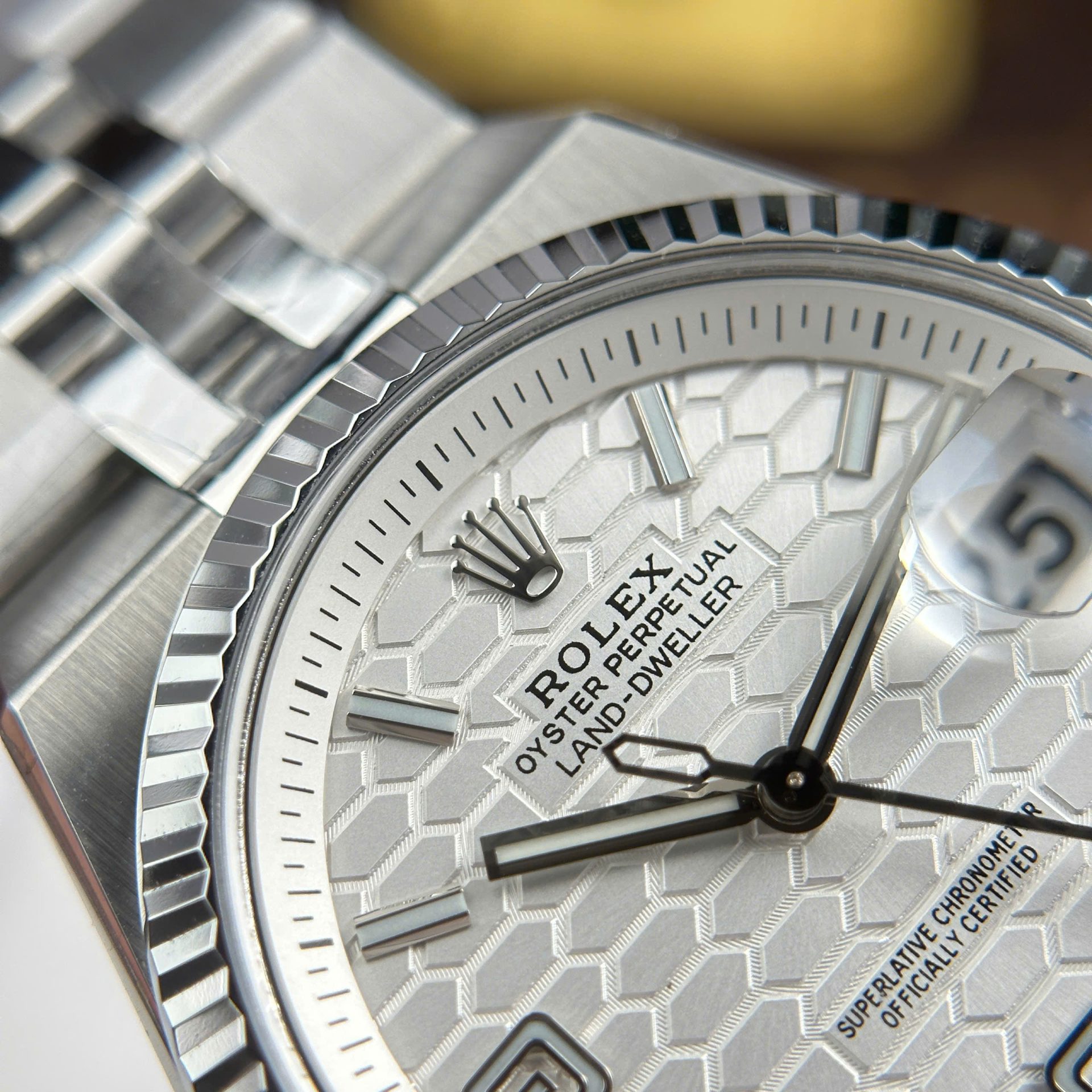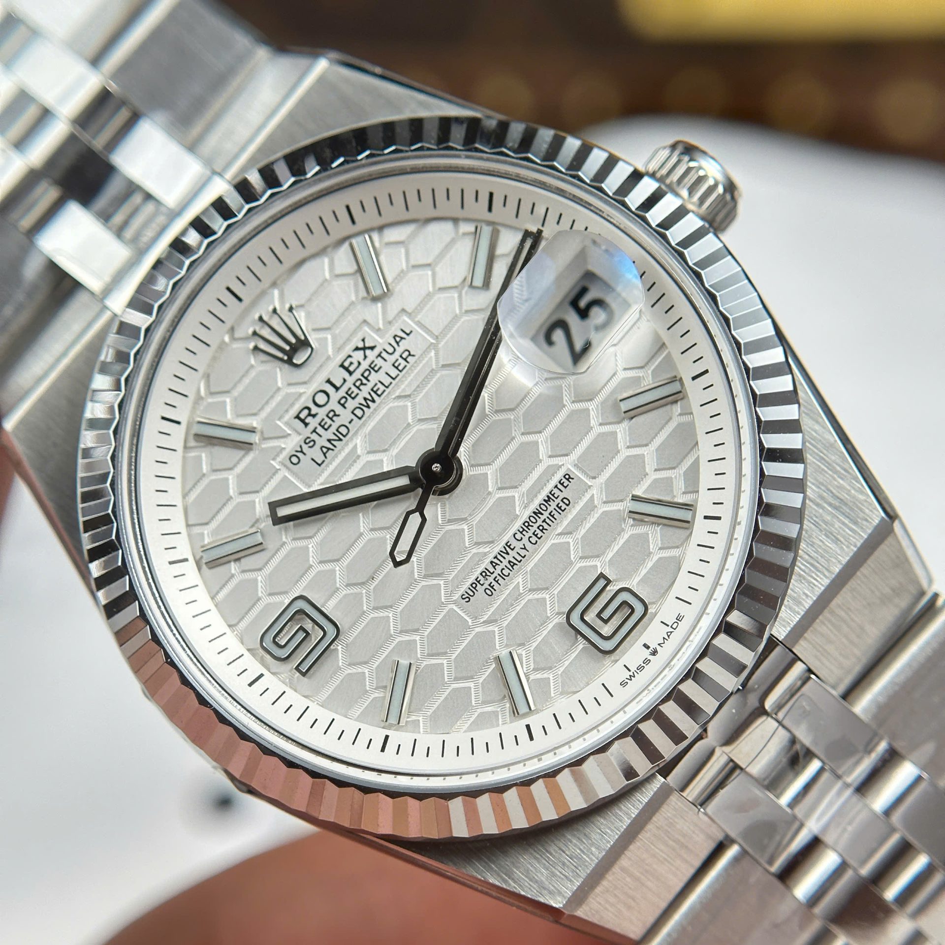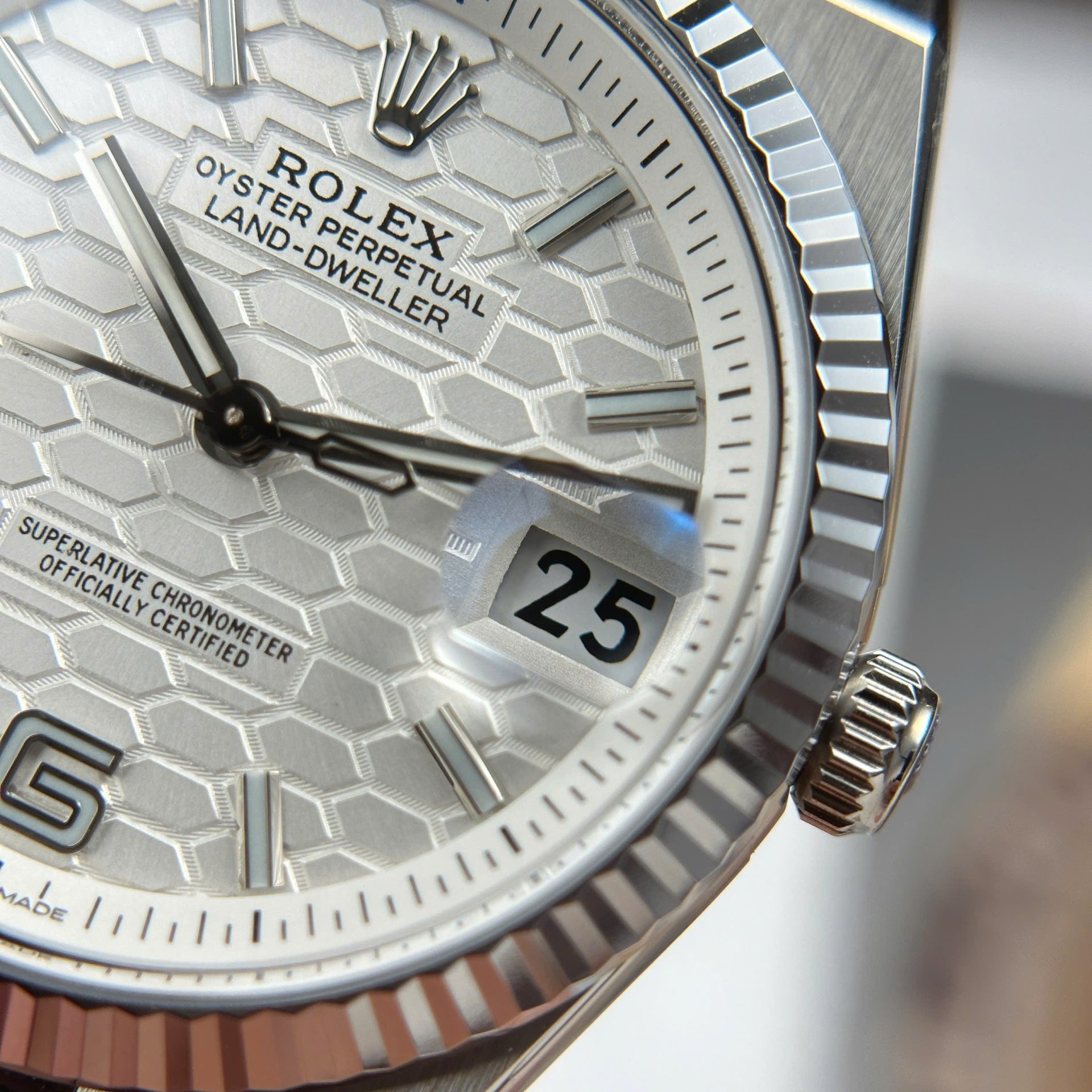 Rolex Land-Dweller 127234 Copies Watches White Dial Honeycomb Pattern 36mm