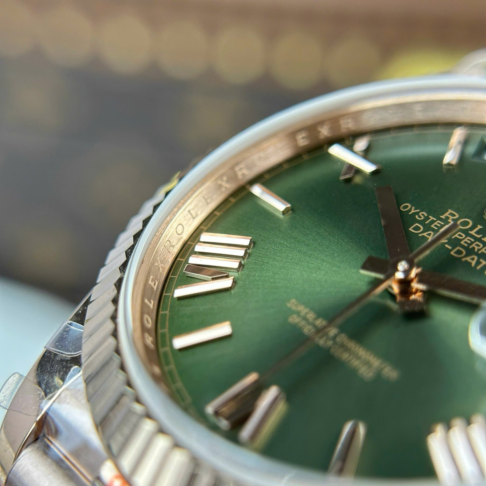 Rolex Luxury Fake Watches Day-Date Green Dial Rose Gold Weight 186 Grams QF Factory 40mm
