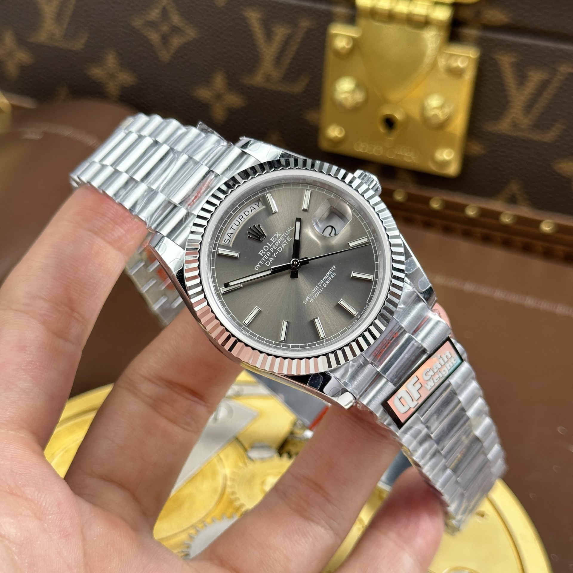 Rolex Luxury Imitation Watches Day-Date Gray Dial Luminous Numbers Weight 186 Grams QF Factory 40mm