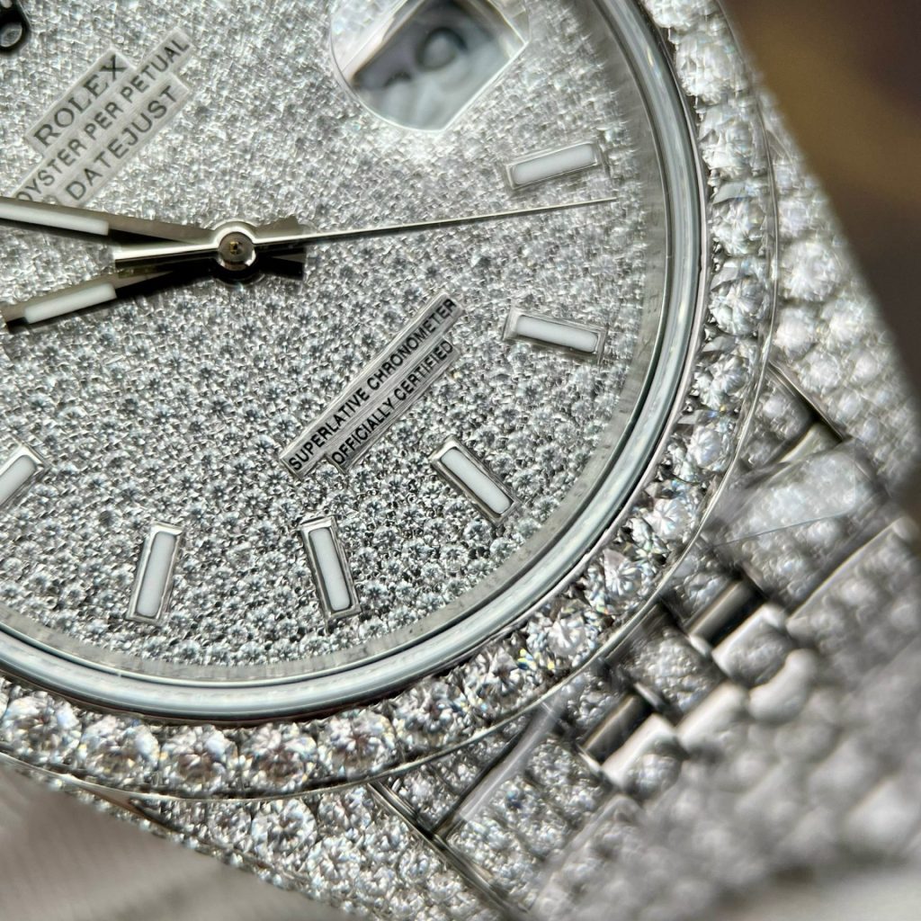 Rolex Replica Watch DateJust Custom Full Diamonds Moissanite 41mm