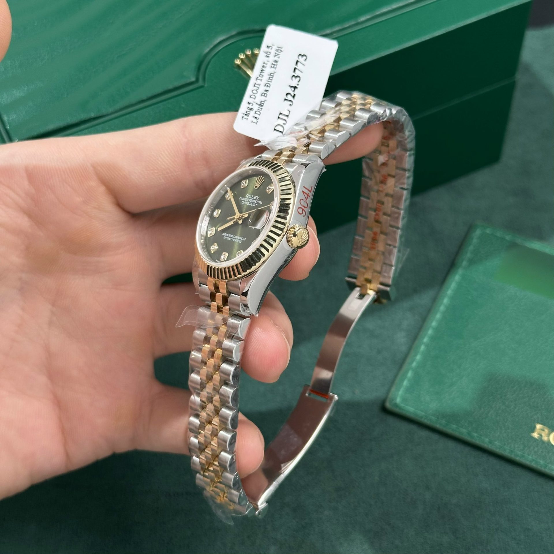 Đồng Hồ Rolex Nữ Rep 11 DateJust Bọc Vàng Gold Mặt Xanh Green GM Factory