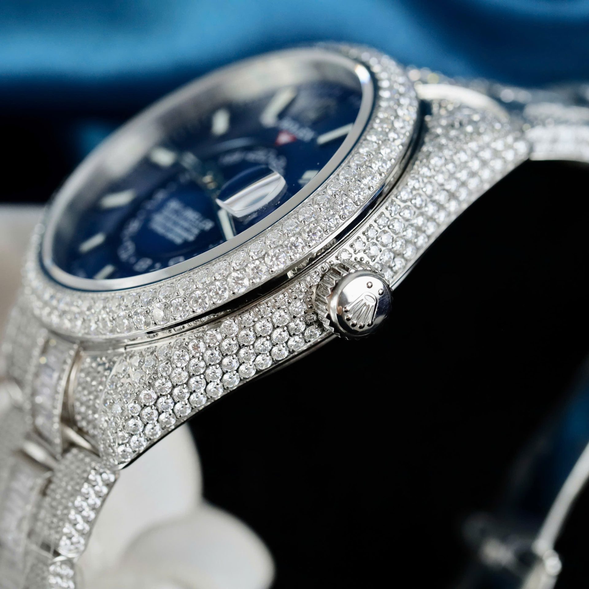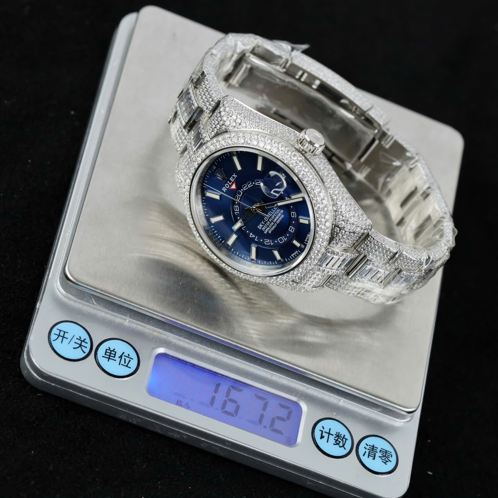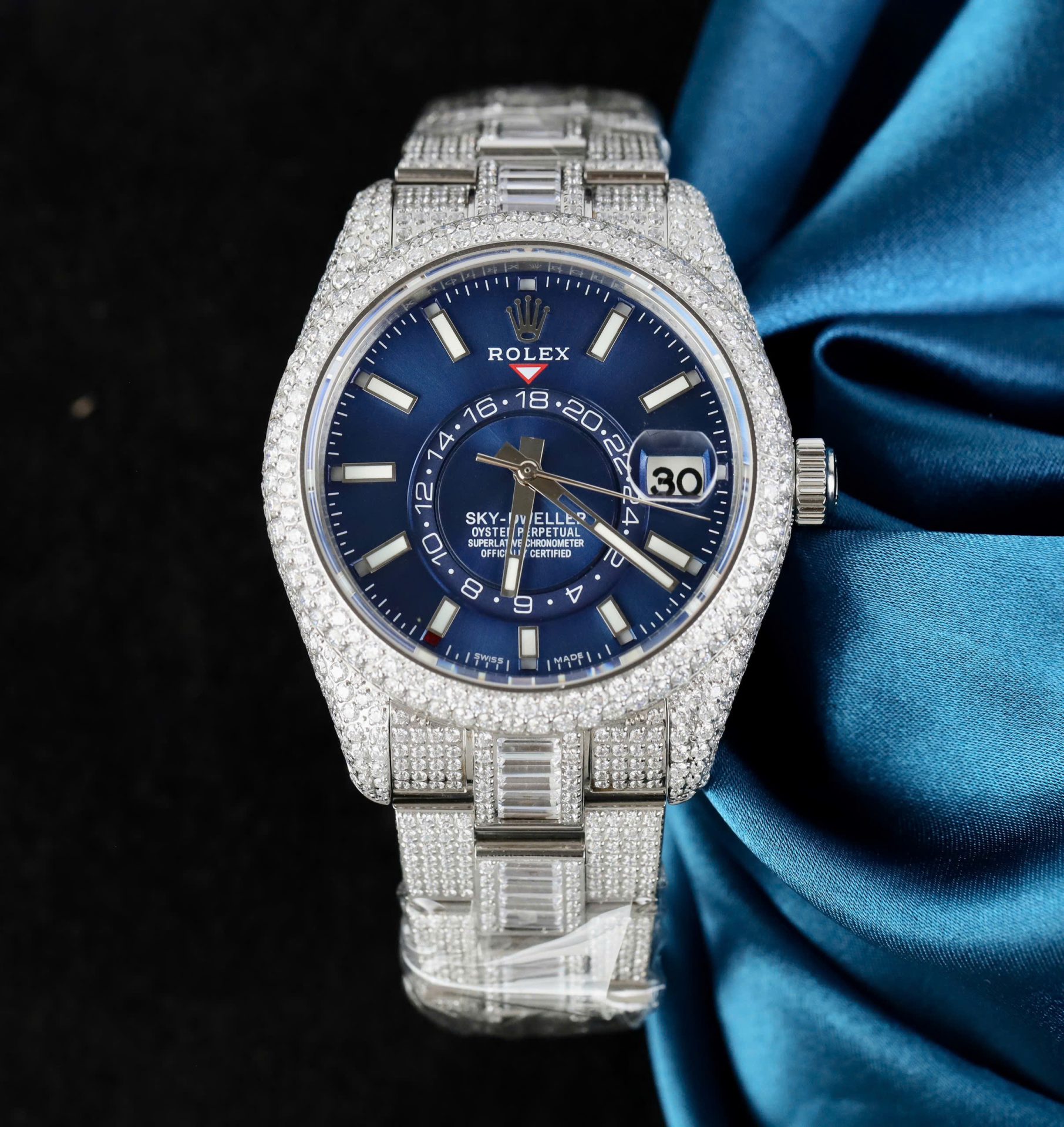 Rolex Sky-Dweller 336934 Blue Dial Fake Watches Full Stone CZ Automatic Movement 42mm