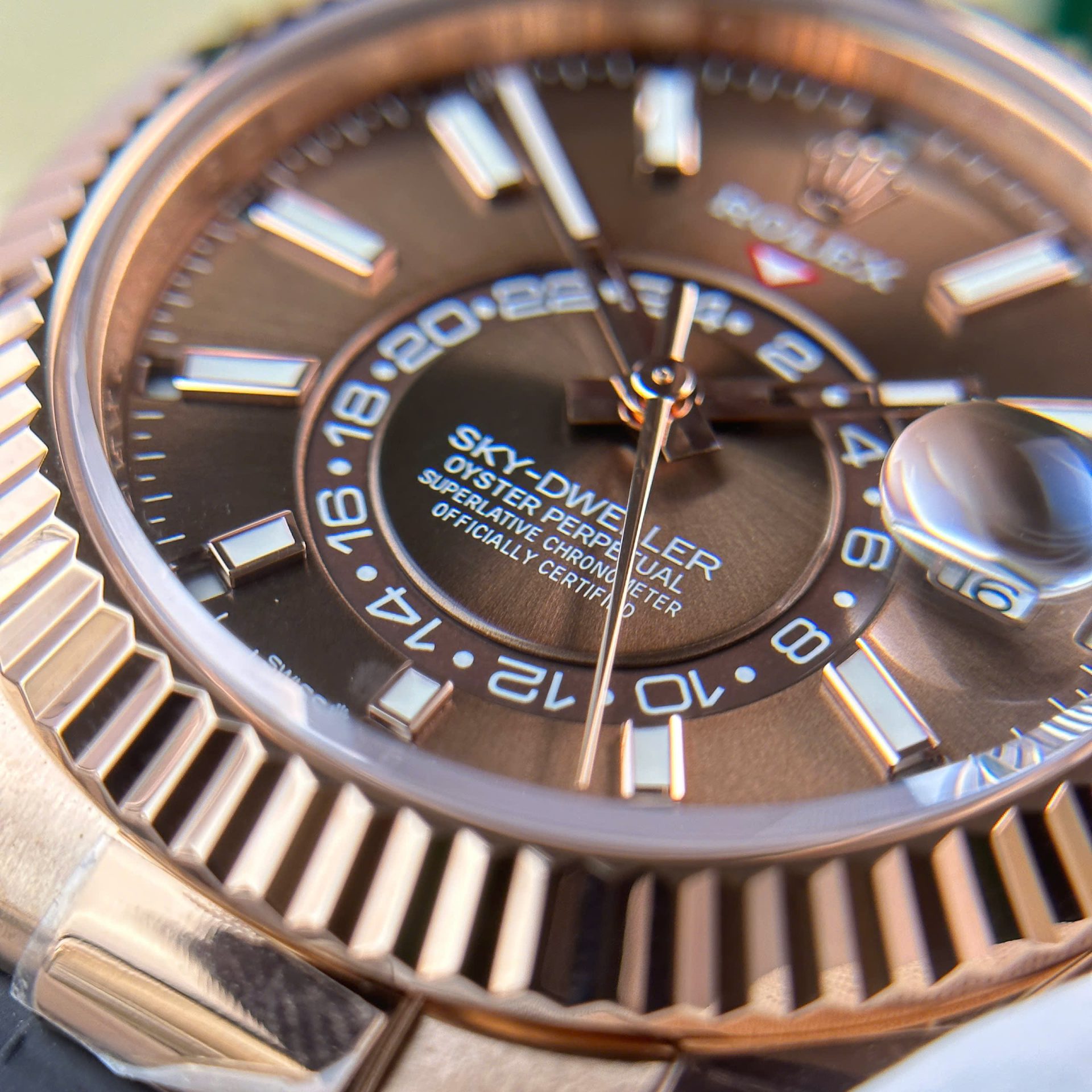 Rolex Sky-Dweller Brown Dial Imitation Watches Custom Rose Gold Plated Weight 192 Grams ZF Factory 42mm