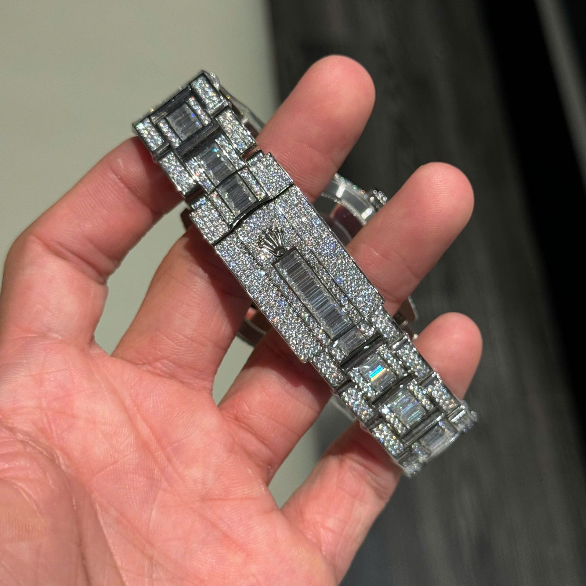 8 reviews for Rolex Sky-Dweller Silver Dial Replica Watches Full Moissanite Diamonds Custom 42mm