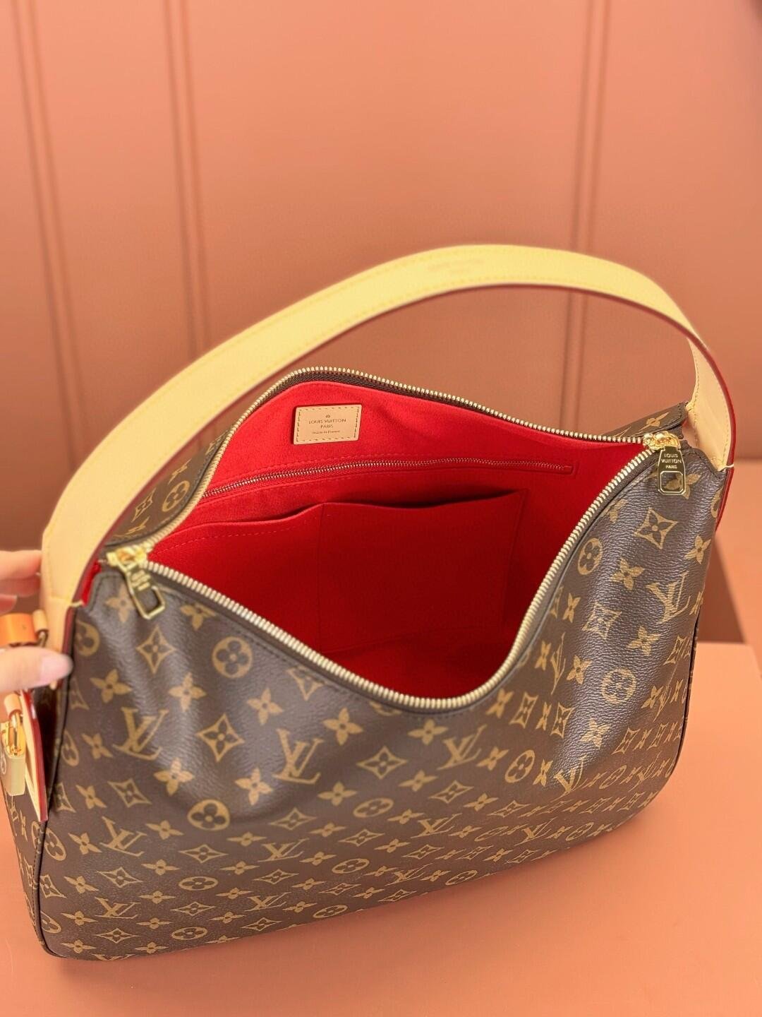 Defined by its distinctive silhouette, the Slouchy MM is the perfect choice for commuting and beyond. This elegant edition showcases the House’s iconic Monogram canvas accented with gold-toned hardware, including a new signature padlock name tag. There is plenty of room inside for work-to-weekend essentials, such as a compact wallet, smartphone and even a 13-inch laptop.