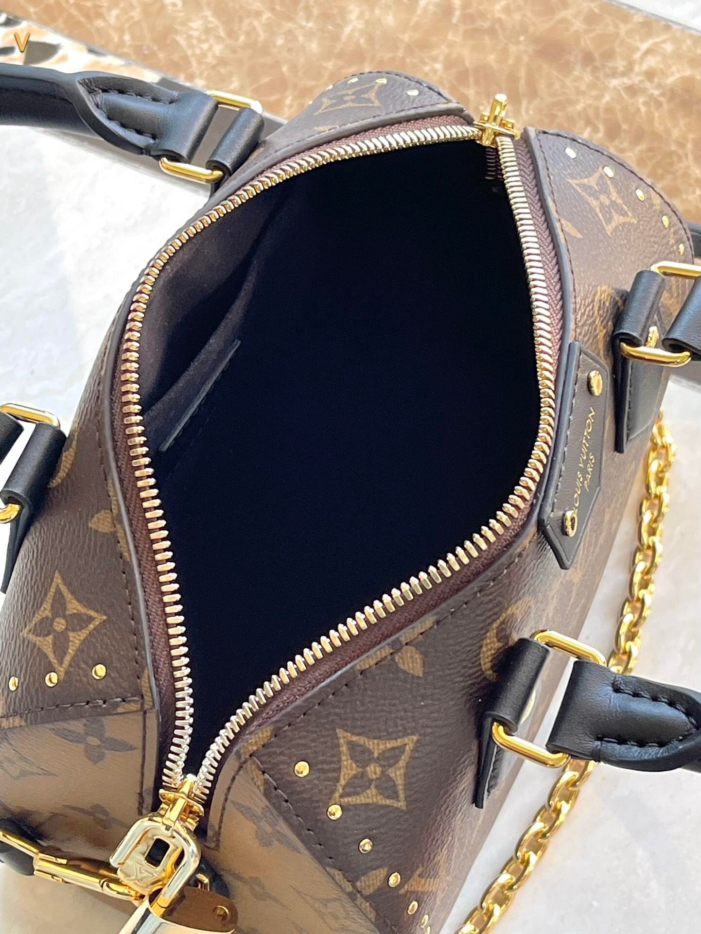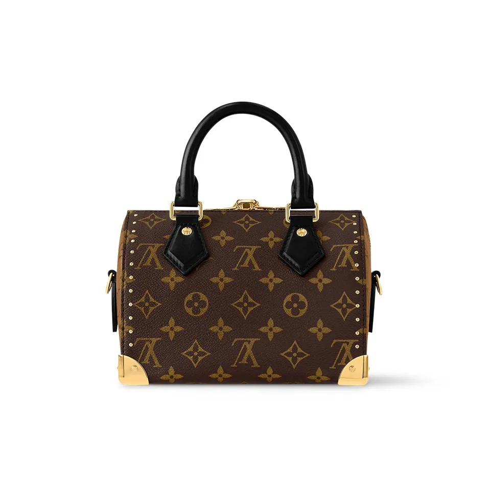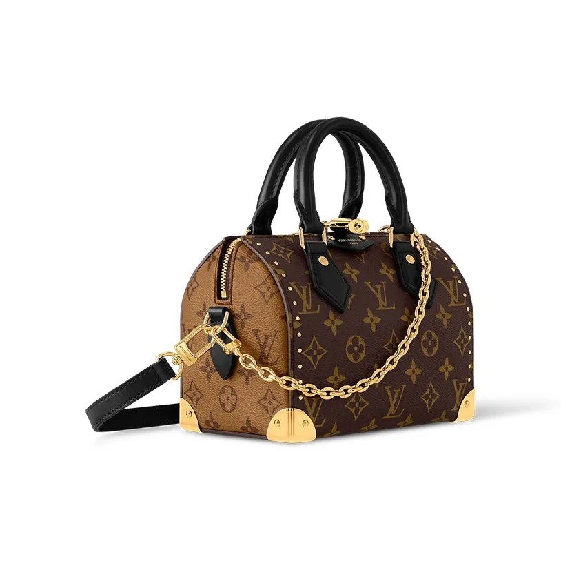 Reimagined with a bold new vision, the iconic Speedy Trunk was introduced for the Cruise 2025 runway. Elevated with heritage trunk details in a sleek gold-tone finish, this edition is crafted from the House’s Monogram canvas with contrasting Monogram reverse trims – iconic signature of Nicolas Ghesquière. Both the strap and chain are removable, and it can be worn cross-body, over the shoulder, or carried by hand.