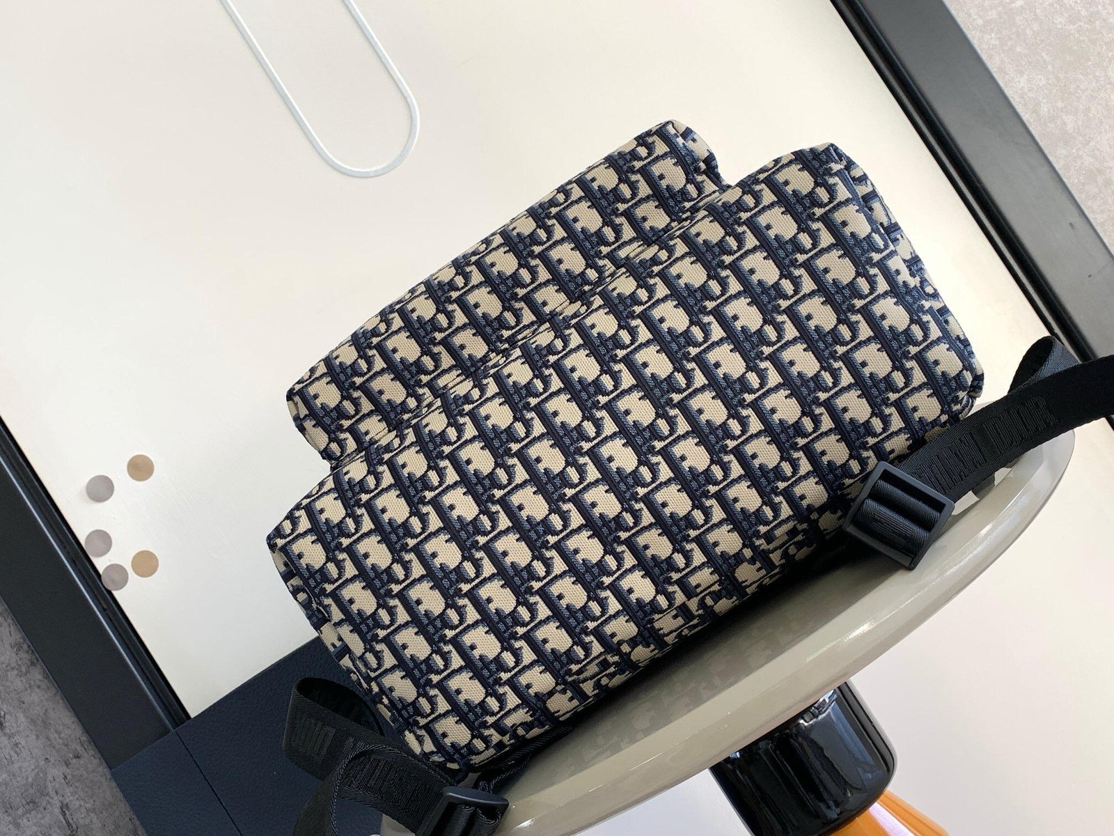 Structure: Adjustable shoulder strap, front zipper pocket, front “CHRISTIAN DIOR PARIS” logo
