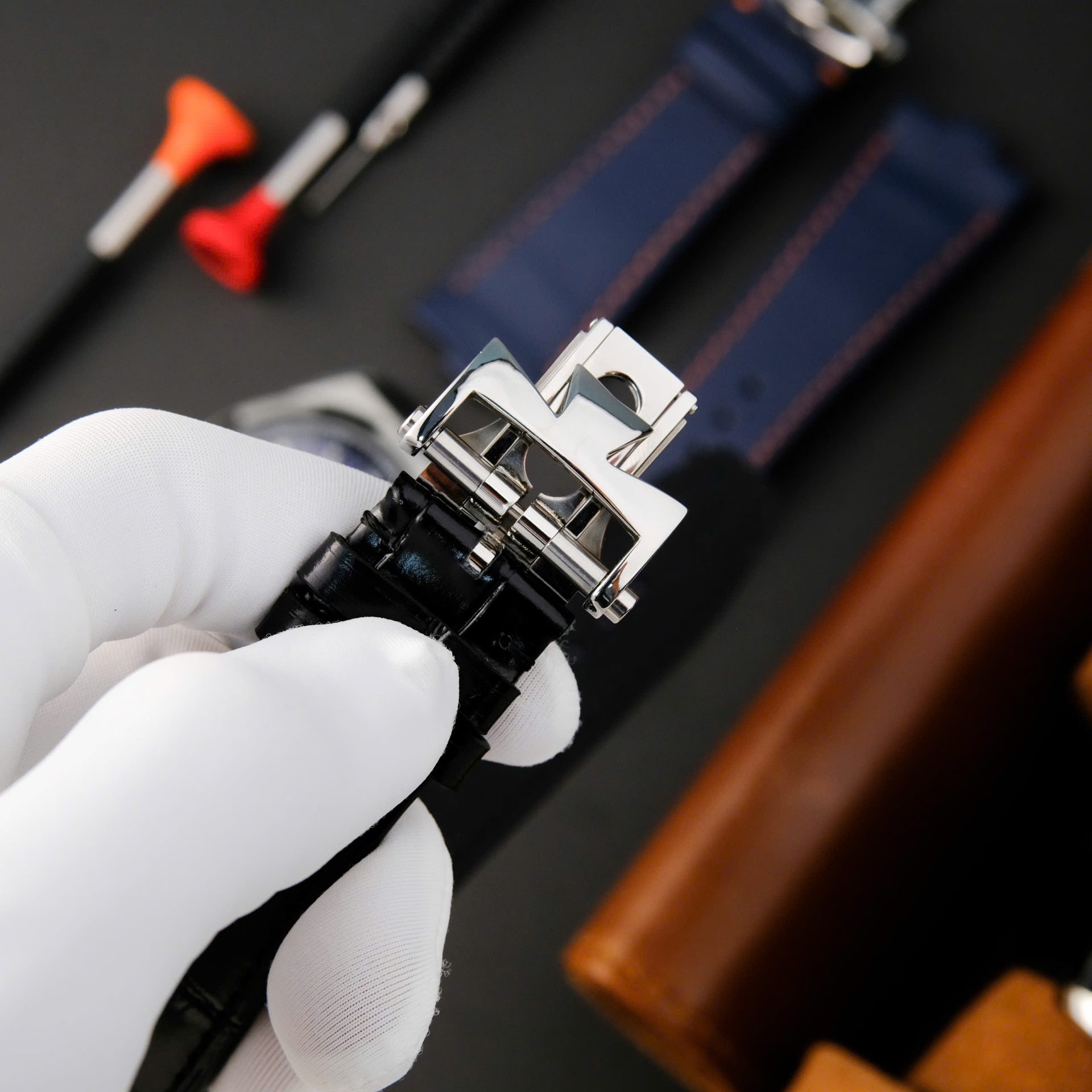 The strap is designed for versatility with a quick-change system that allows the wearer to switch between stainless steel. rubber. or leather straps without the need for tools. providing maximum convenience.