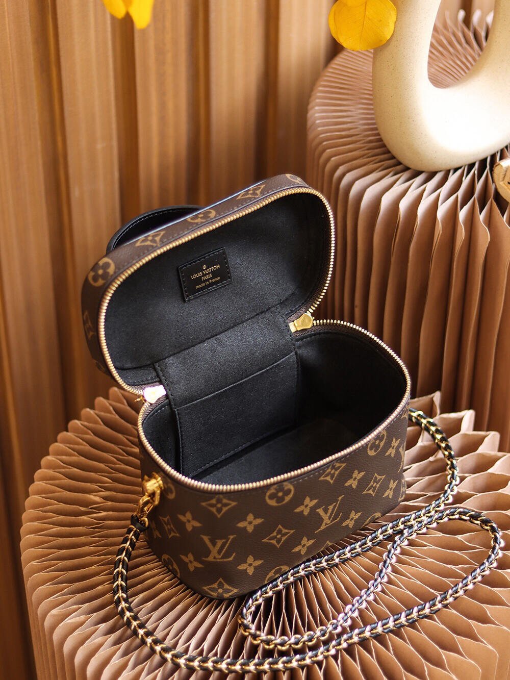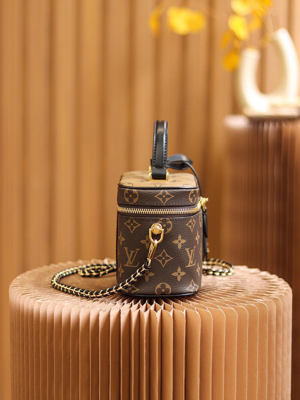 Features: Inspired by Louis Vuitton’s classic Nice vanity case, this lightweight and supple handbag features a top handle and a removable leather-woven chain strap, allowing for hand-carry, shoulder, or crossbody wear, blending the brand’s heritage with modern style.