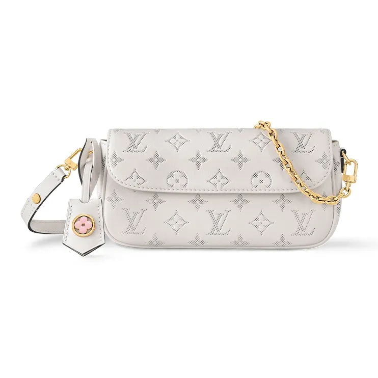 The Ivy wallet on chain is interpreted in Monogram-pattern calf leather as part of the Flower Ring collection. The theme takes its name from the Monogram Flower within a circle which decorates the key bell. Ideal for essentials, this chic mini bag comes with a removable chain and a removable, adjustable shoulder strap to offer different looks and carry options.